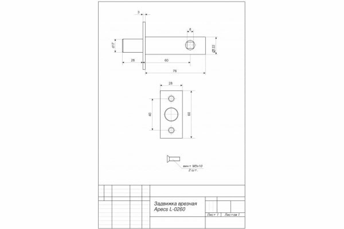 Задвижка врезная Apecs (Апекс) L-0260-CR хром