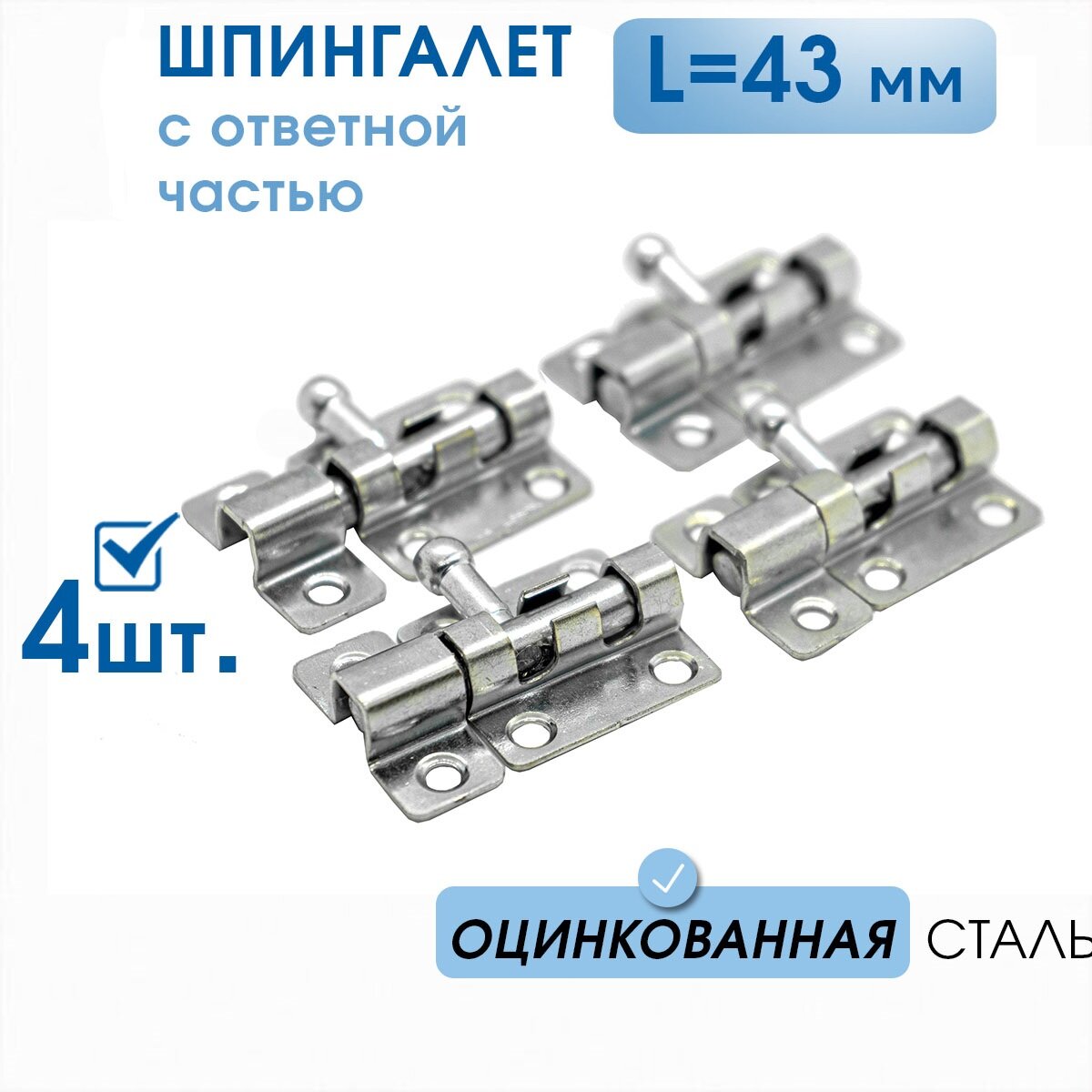 Купить Шпингалет маленький L-43 с ответной частью (4 шт), оцинк. сталь, задвижка малая на дверь накладная ЗТ, щеколда для двери маленькая