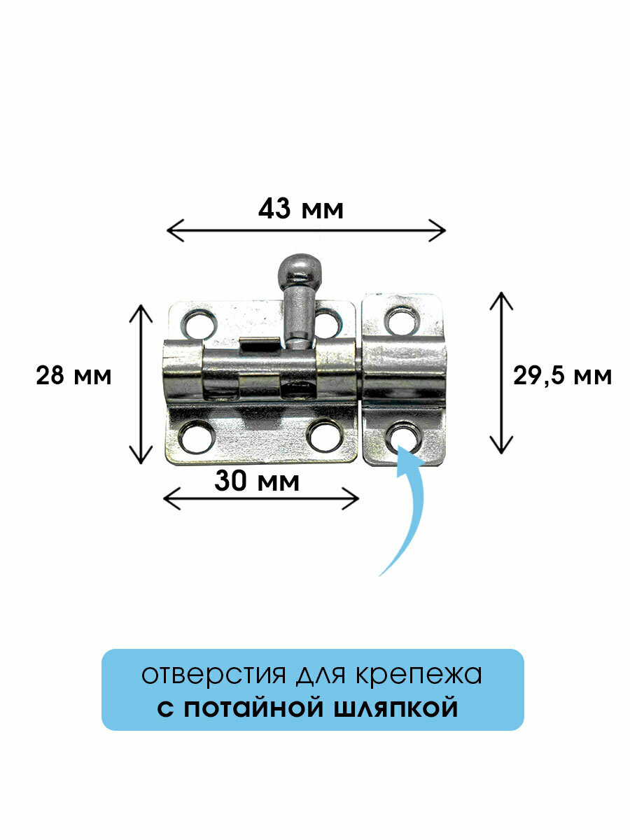 Купить Шпингалет дверной маленький 43мм (5 шт), оцинк. сталь, задвижка малая накладная ЗТ, щеколда для двери маленькая