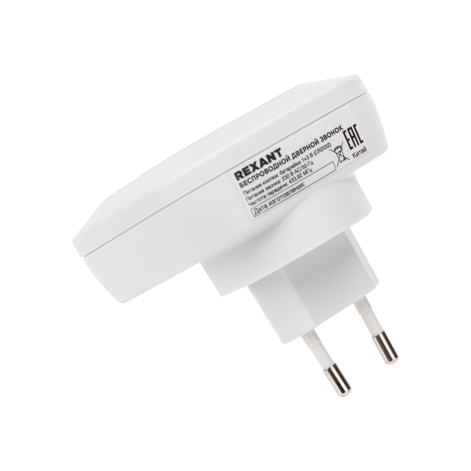 Беспроводной дверной звонок REXANT в розетку c цифровым кодированием, мигающий, 36 мелодий, 150м, IP44 (белый/серый)