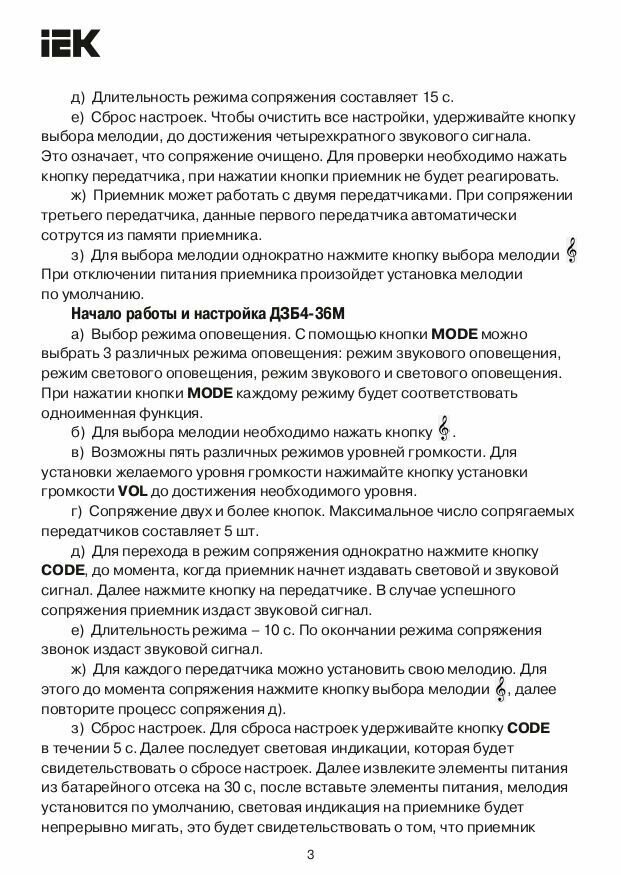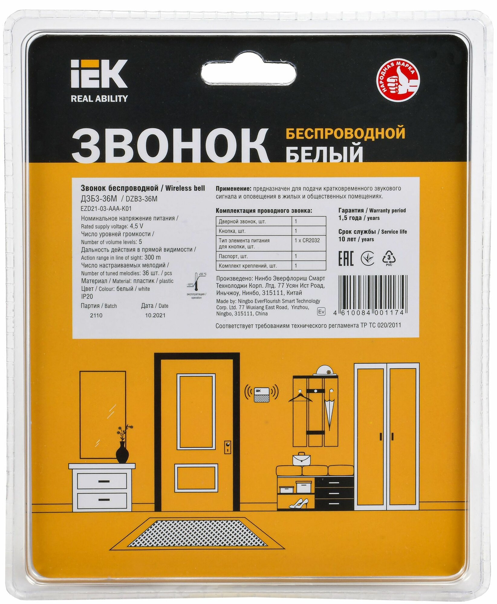IEK IEK Беспроводной звонок ДЗБ3-36М 36 мелодий белый IEK EZD21-03-AAA-K01 интересное: