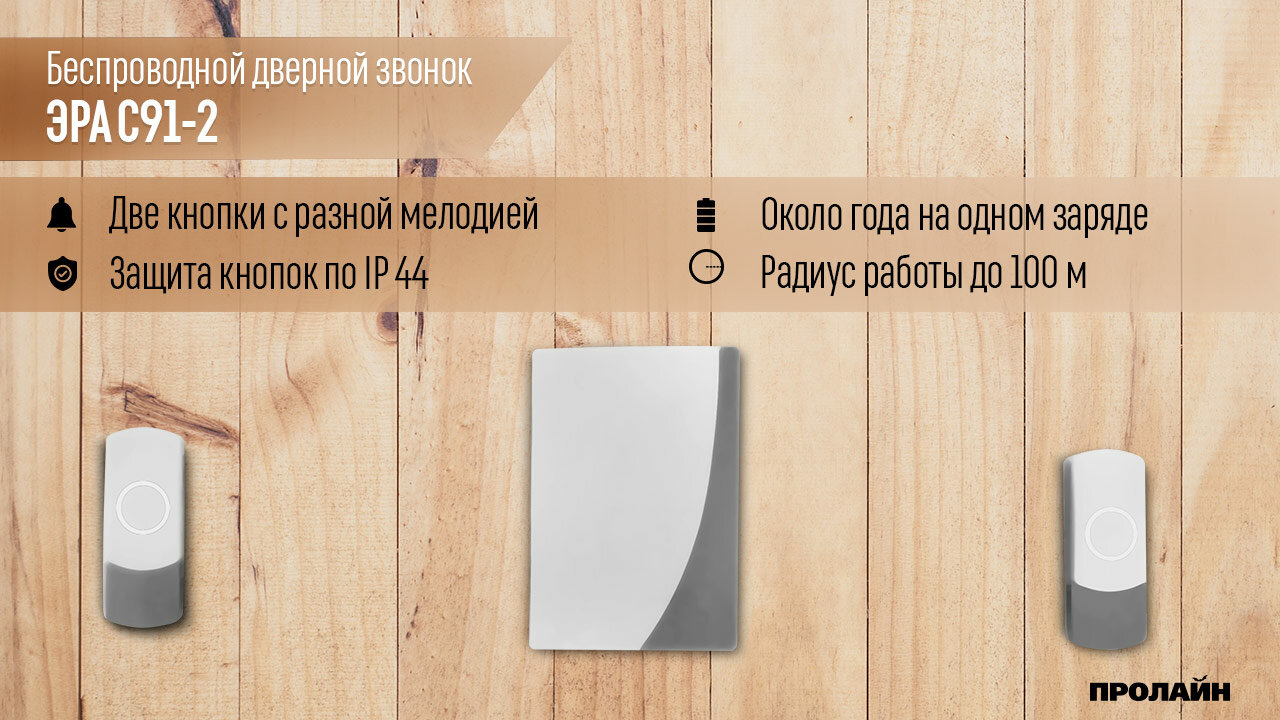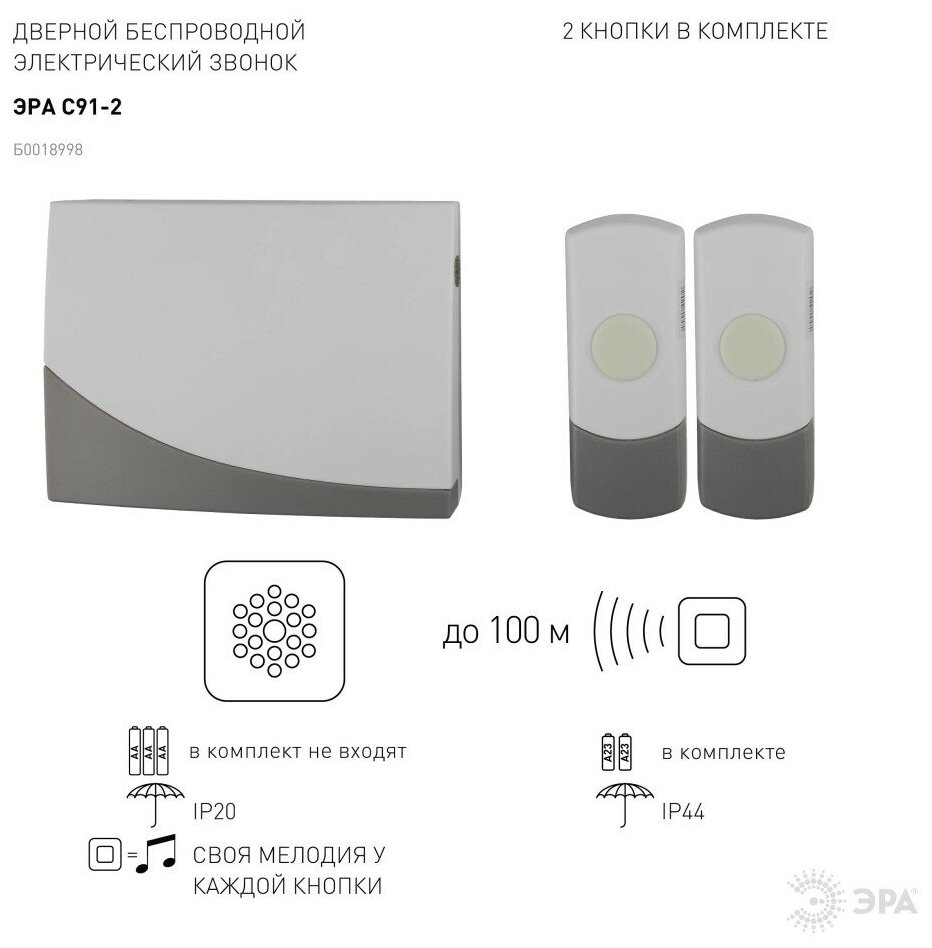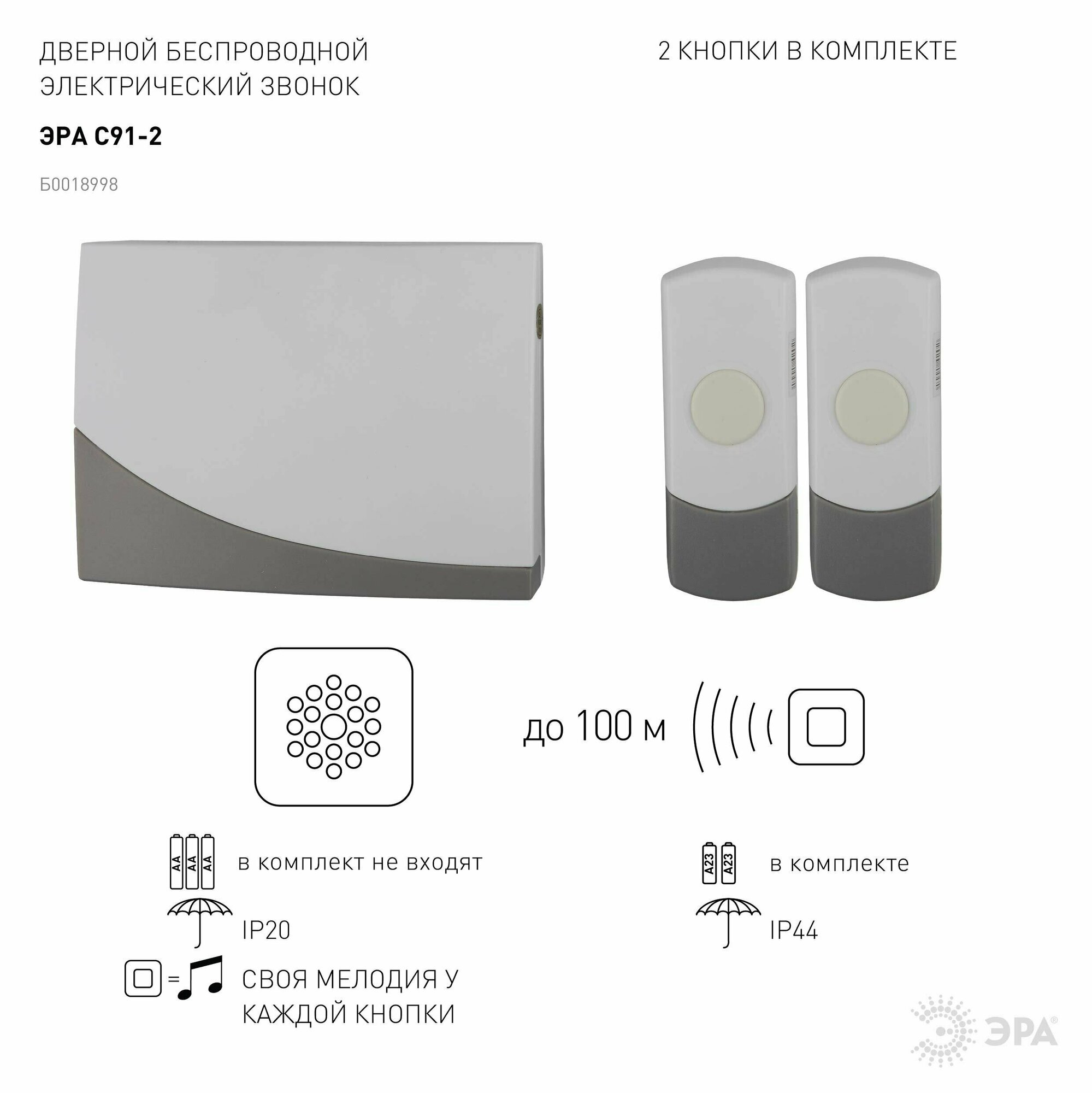 ЭРА Звонок ЭРА C91-2 беспроводной две кнопки интересное: