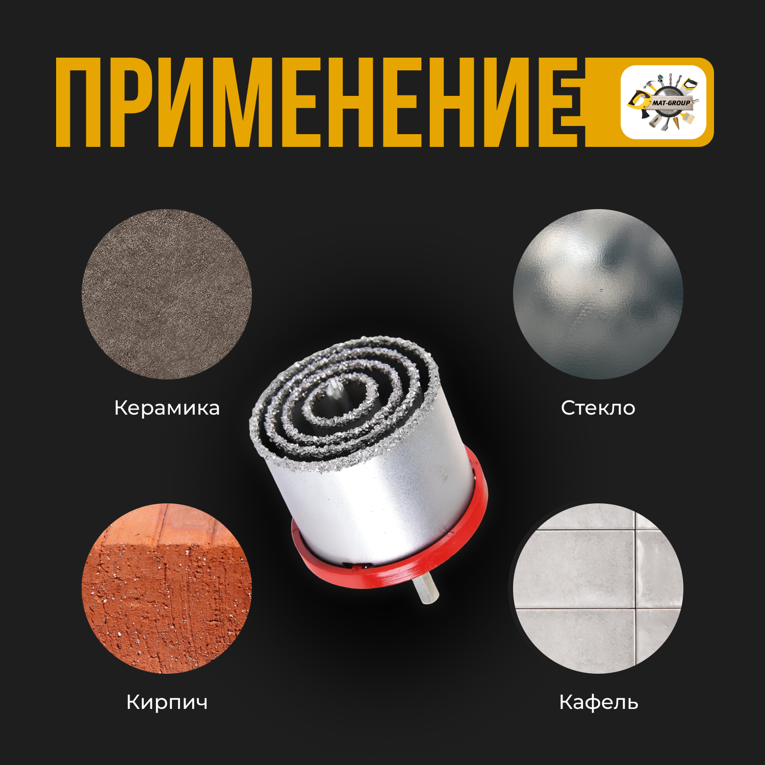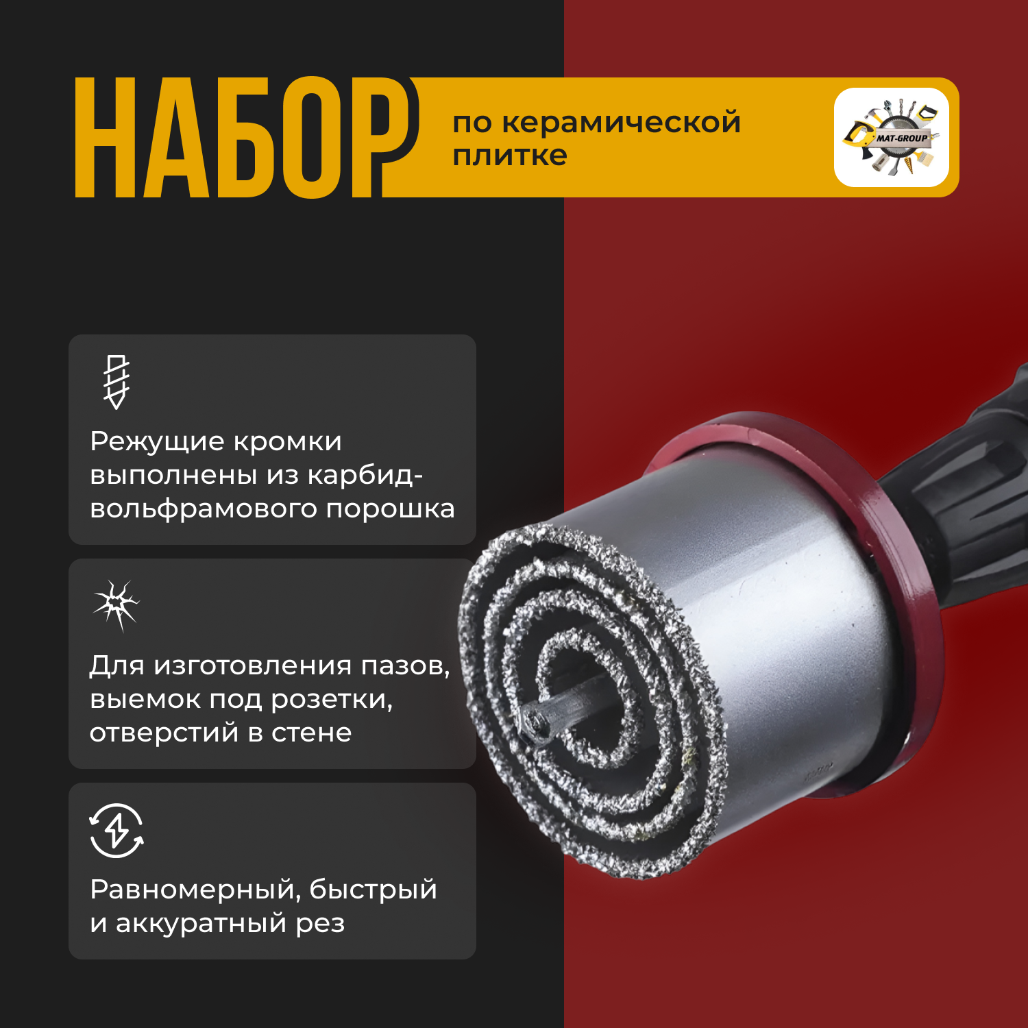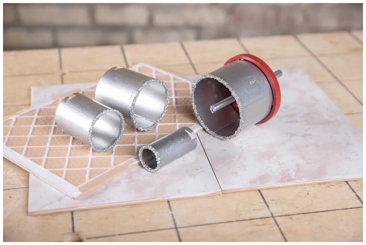 Набор коронок по керамической плитке, 33-53-67-73 мм, 6-гранный хвостовик /Набор вольфрамовых коронок 5пред. интересное:
