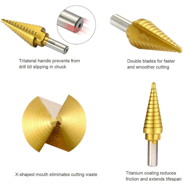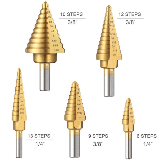 Набор ступенчатых сверл по металлу с титановым покрытием в кейсе 6 шт интересное: