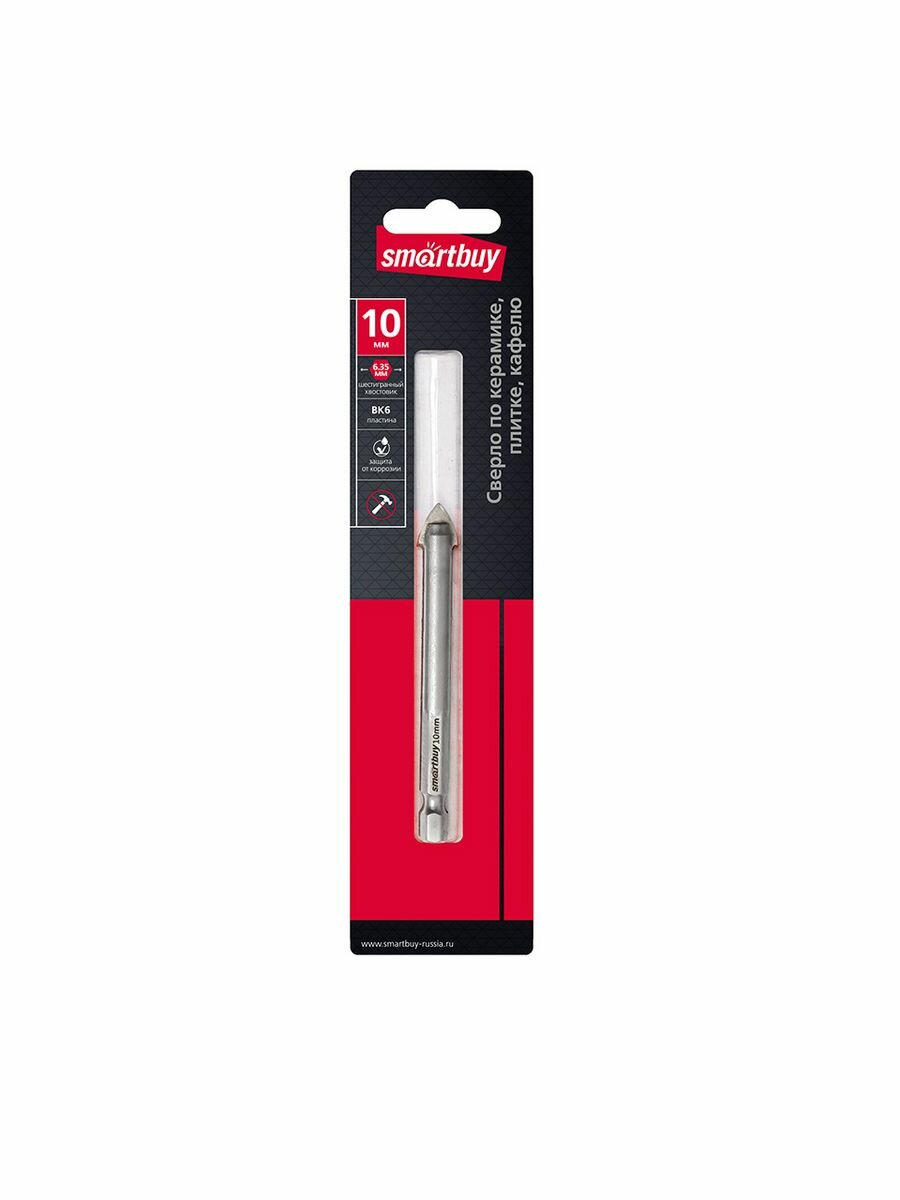 Сверло 10 мм, по кафелю, плитке, керамограниту, твердосплавный наконечник Smartbuy SBT-DC-10