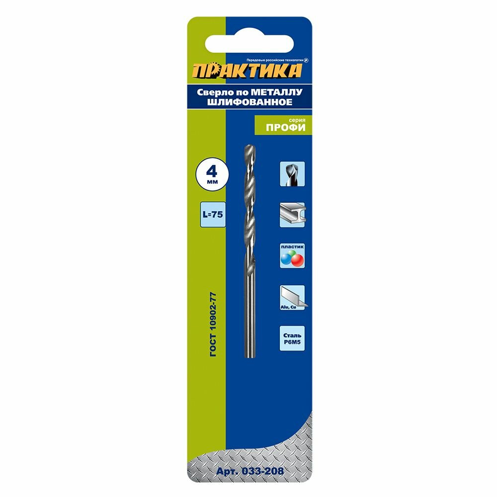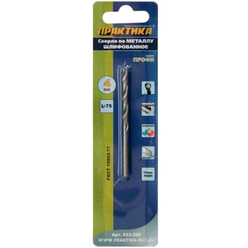 Купить Сверло по металлу ПРАКТИКА Р6М5 4,0 х 75 мм (1шт.)
