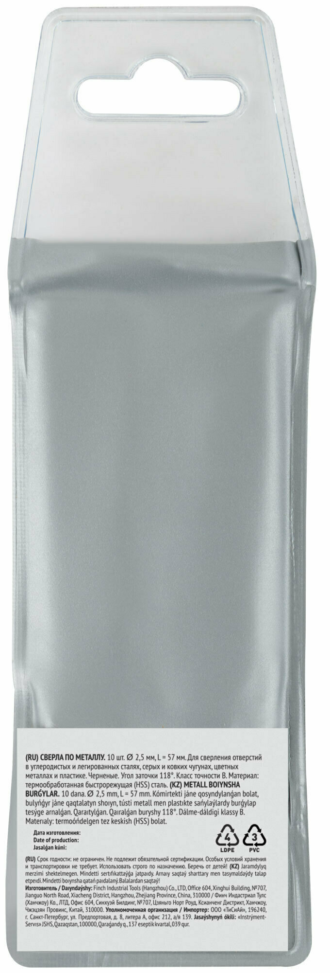 | Количество сверл по металлу | 10 шт. |