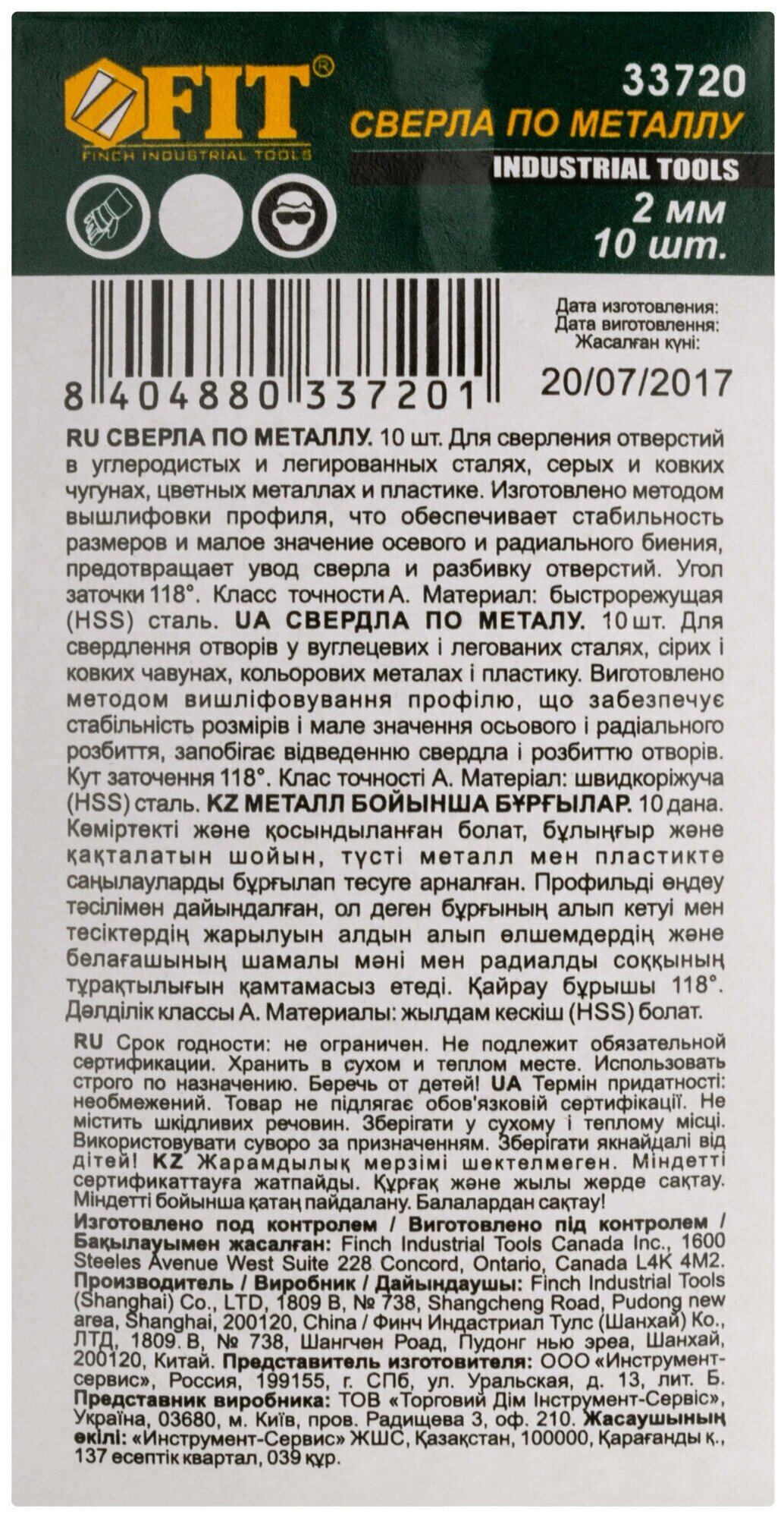 FIT Сверла по металлу 1 х 34 мм набор 10 шт. HSS Р9М3 титановое покрытие