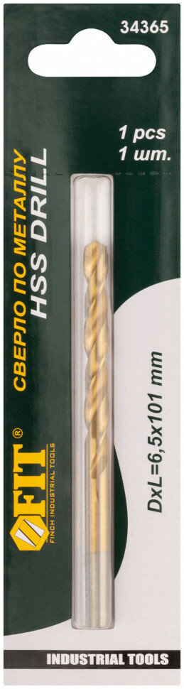 Купить Сверло по металлу FIT HSS 6, 5 мм, титановое покрытие, 1 шт