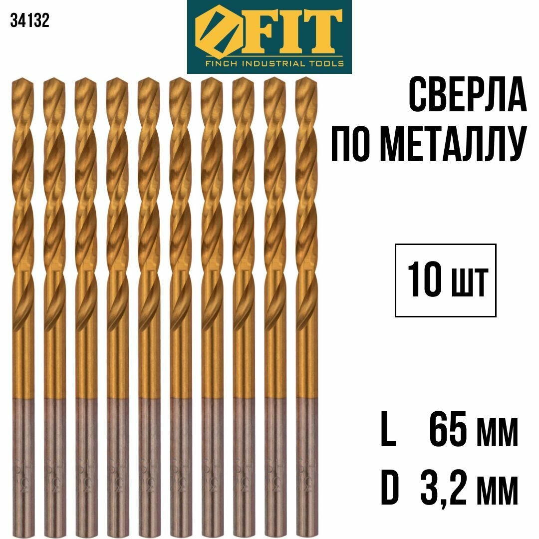 FIT Сверла по металлу 1 х 34 мм набор 10 шт. HSS Р9М3 титановое покрытие