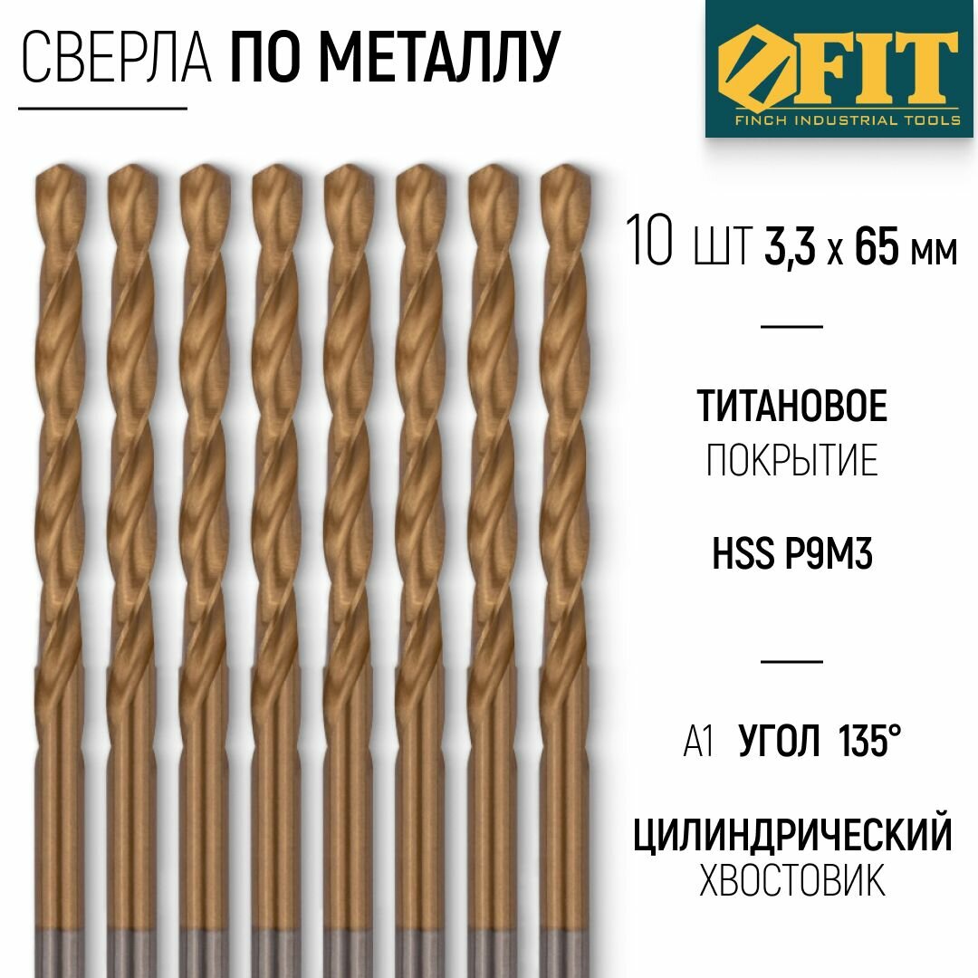 FIT Сверла по металлу 1 х 34 мм набор 10 шт. HSS Р9М3 титановое покрытие
