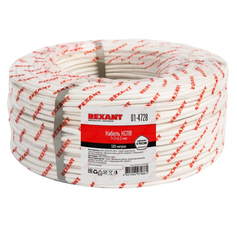 Кабель пожарной сигнализации Rexant 01-4728 КСПВ 1х2 х 0,5 мм (500 метров), катушка интересное: