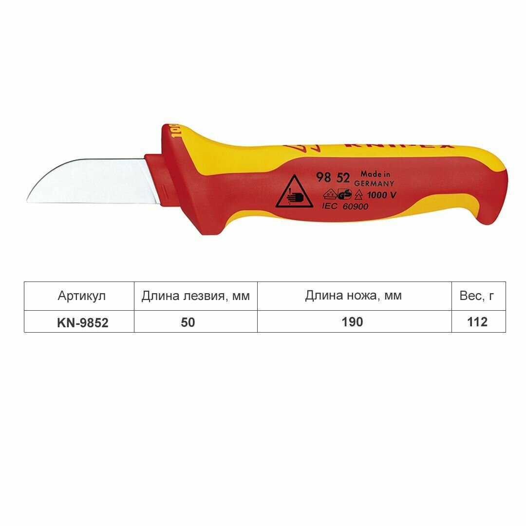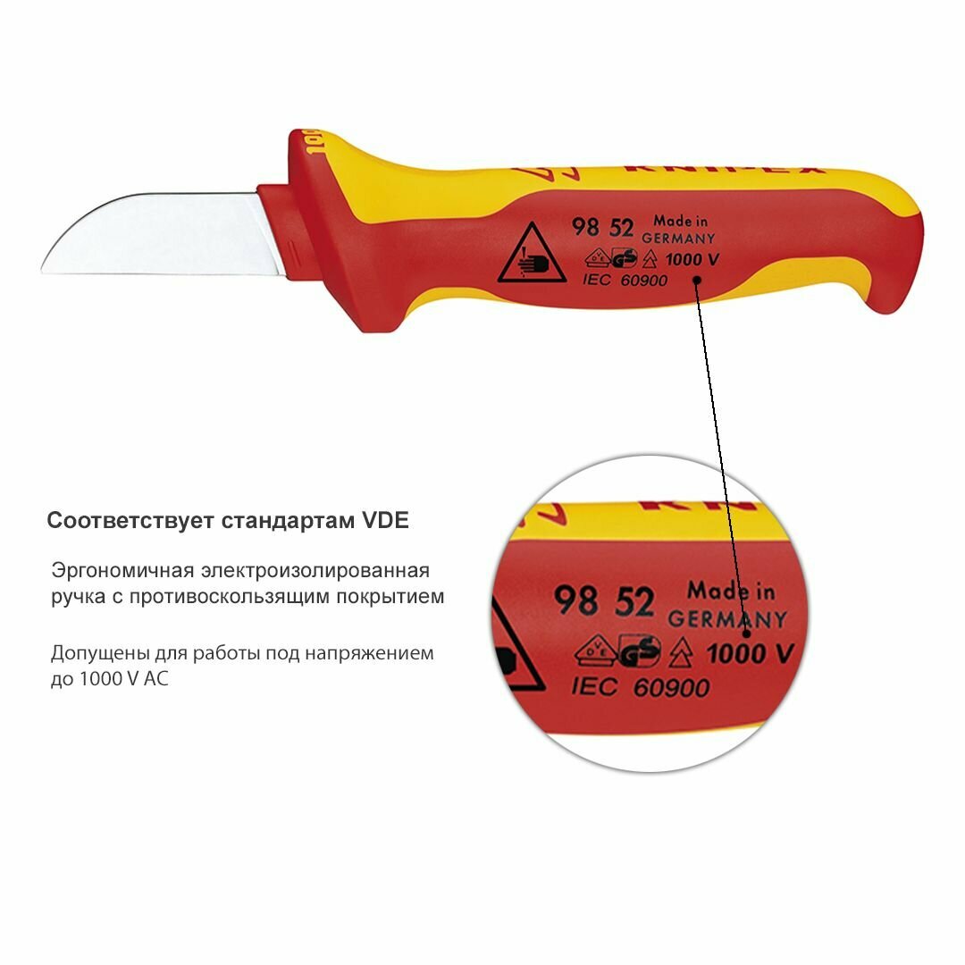 Купить Нож KNIPEX для кабеля VDE, 190 мм, диэлектрический, 2-компонентная рукоятка KN-9852