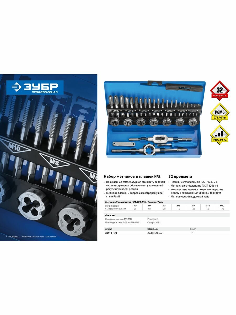 Набор метчиков и плашек ЗУБР 32 предмета, 28110-H32 интересное:
