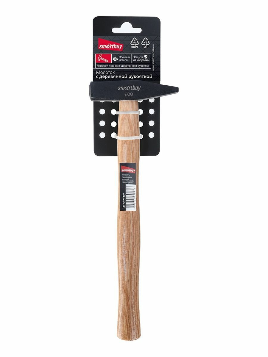 Столярный молоток с гвоздодером с деревянной проклеенной рукояткой Smartbuy 200 г, tools SBT-WHN-200p1