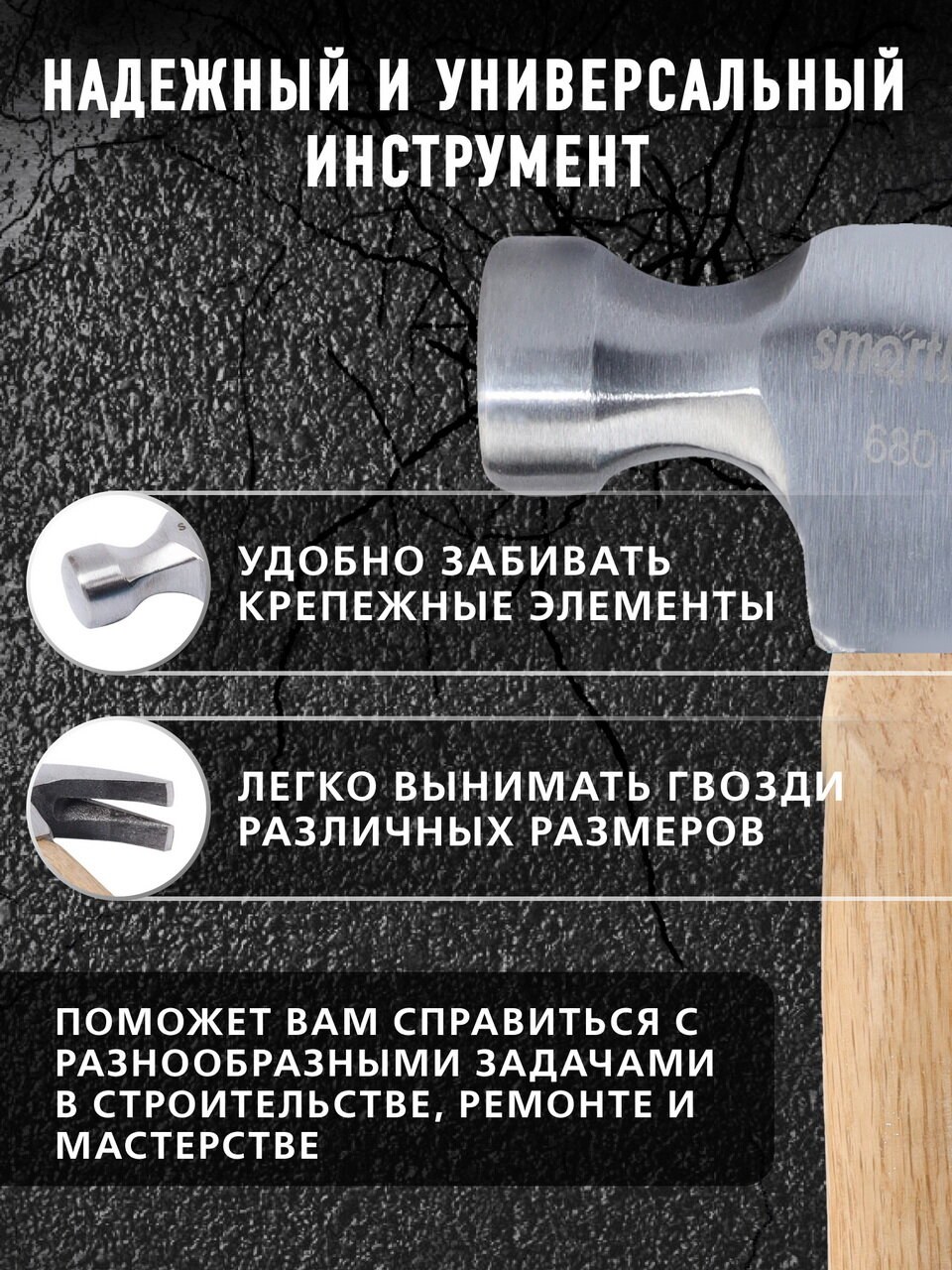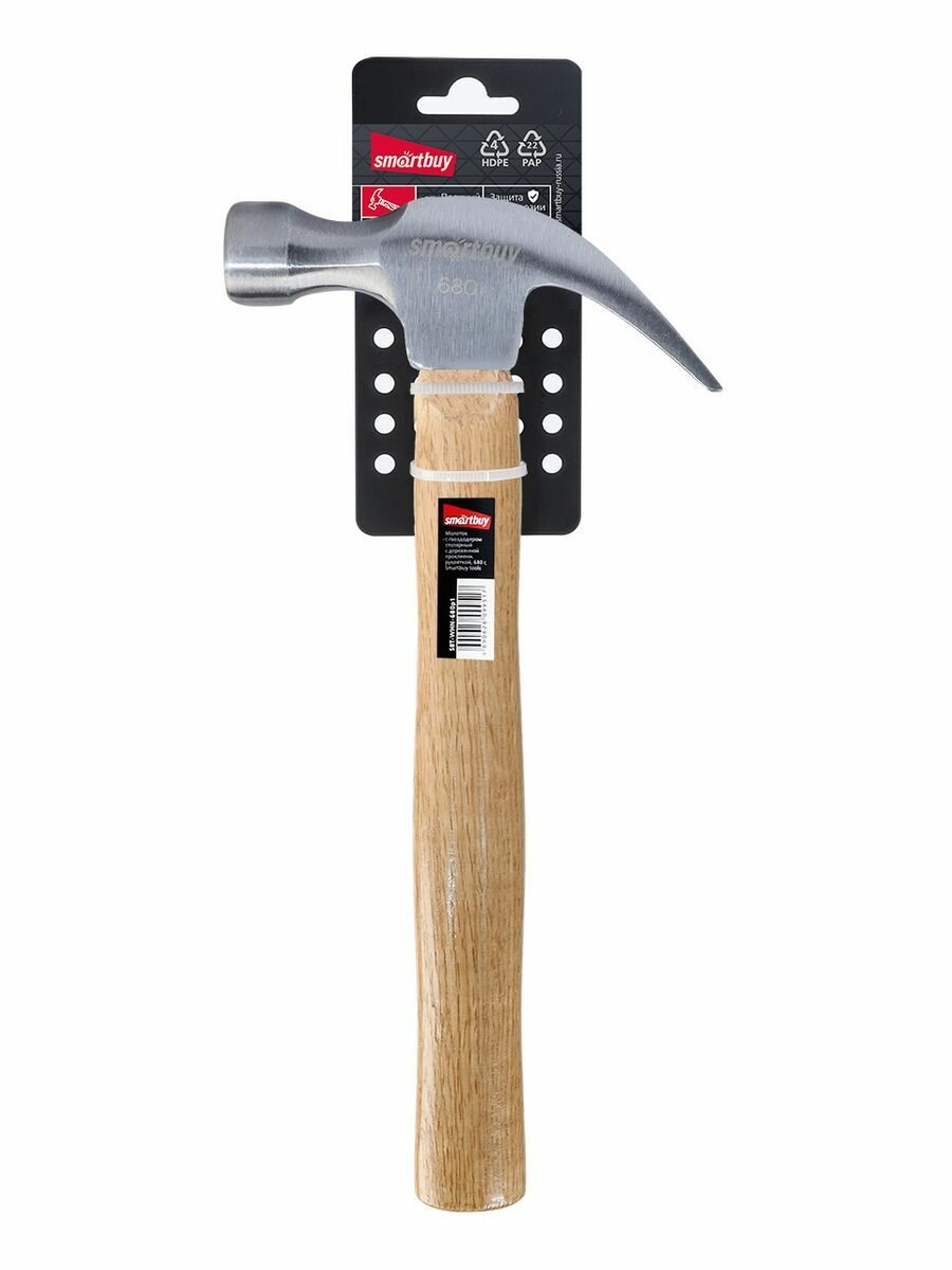 Молоток с гвоздодером столярный с деревянной проклеенной рукояткой, 680 г, интересное: