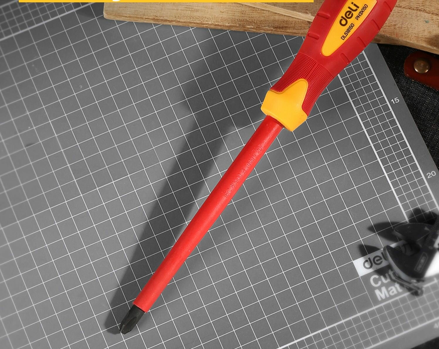 Купить Диэлектрическая крестовая отвертка Deli DL518150 ph3x150мм (сертификат vde до 1000в, магнитный наконечник, сталь cr-v, рукоять pp+tpr) 110594