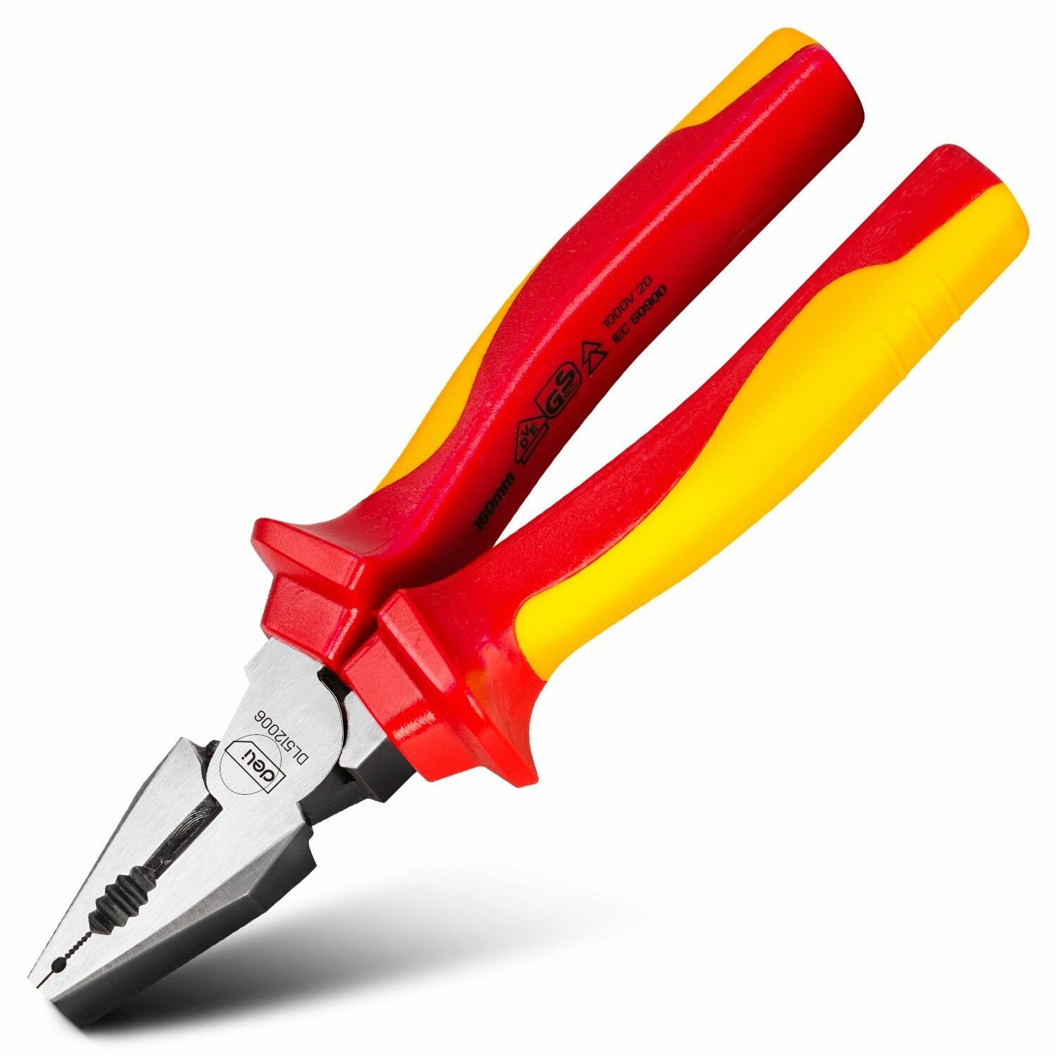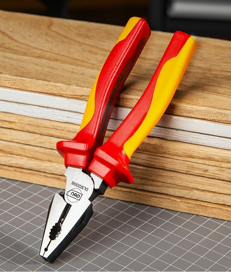 Диэлектрические комбинированные плоскогубцы Deli DL512008 200мм (сертификат VDE до 1000В, сталь Cr-V, рукоять PP+TPR)