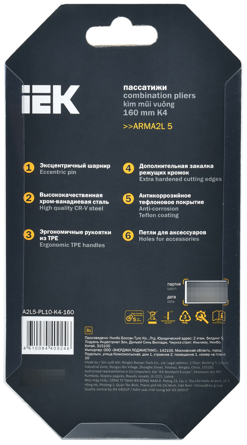 Пассатижи 160мм K4 ARMA2L 5 IEK A2L5-PL10-K4-160 интересное: