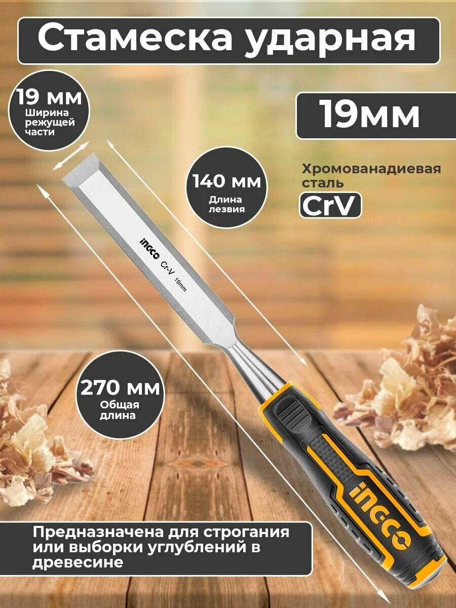 Стамеска по дереву ударная 14x140мм INGCO INDUSTRIAL, HWC0806, CrV