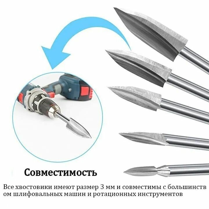 Гравировальные резцы по дереву для дрели, гравера, бормашинки (сверла для резьбы по дереву) интересное: