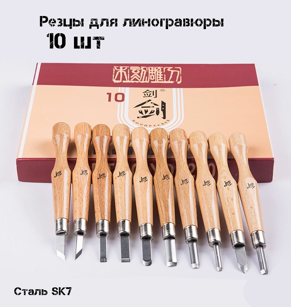 Набор резцов для линогравюры 10 шт , штихеля для ксилографии, стамески для эстампа интересное: