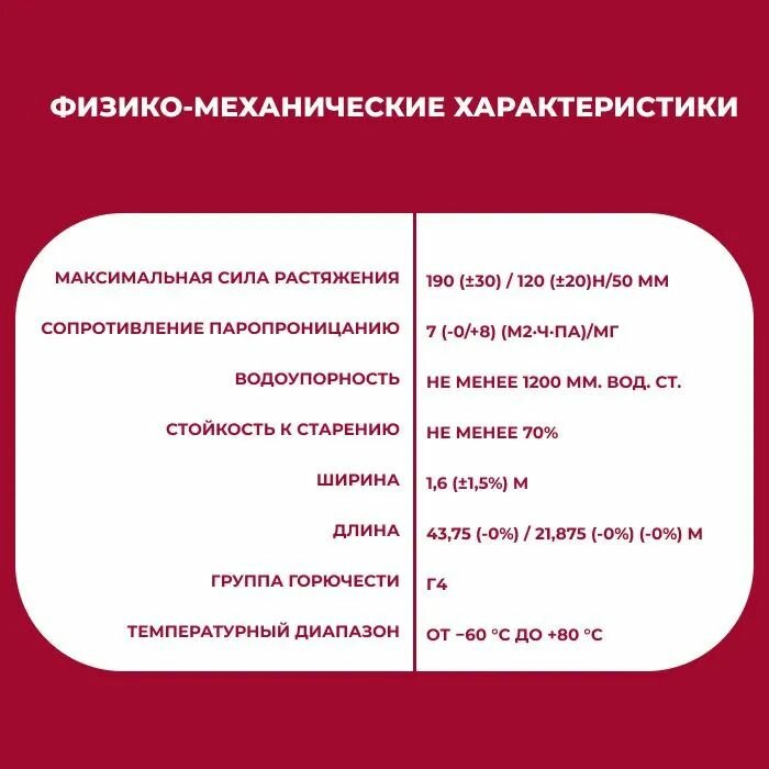 | Влагоустойчивость | 1200 мм вод. ст. |