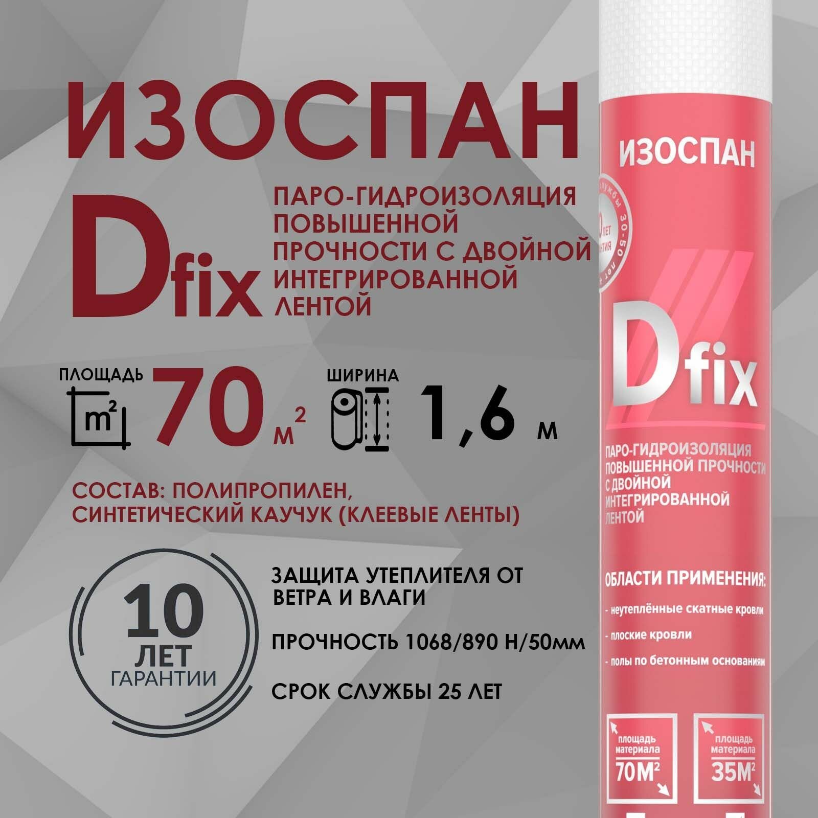 Паро-гидроизоляция повышенной прочности с двойной интегрированной лентой Изоспан D fix 70 кв.м. интересное: