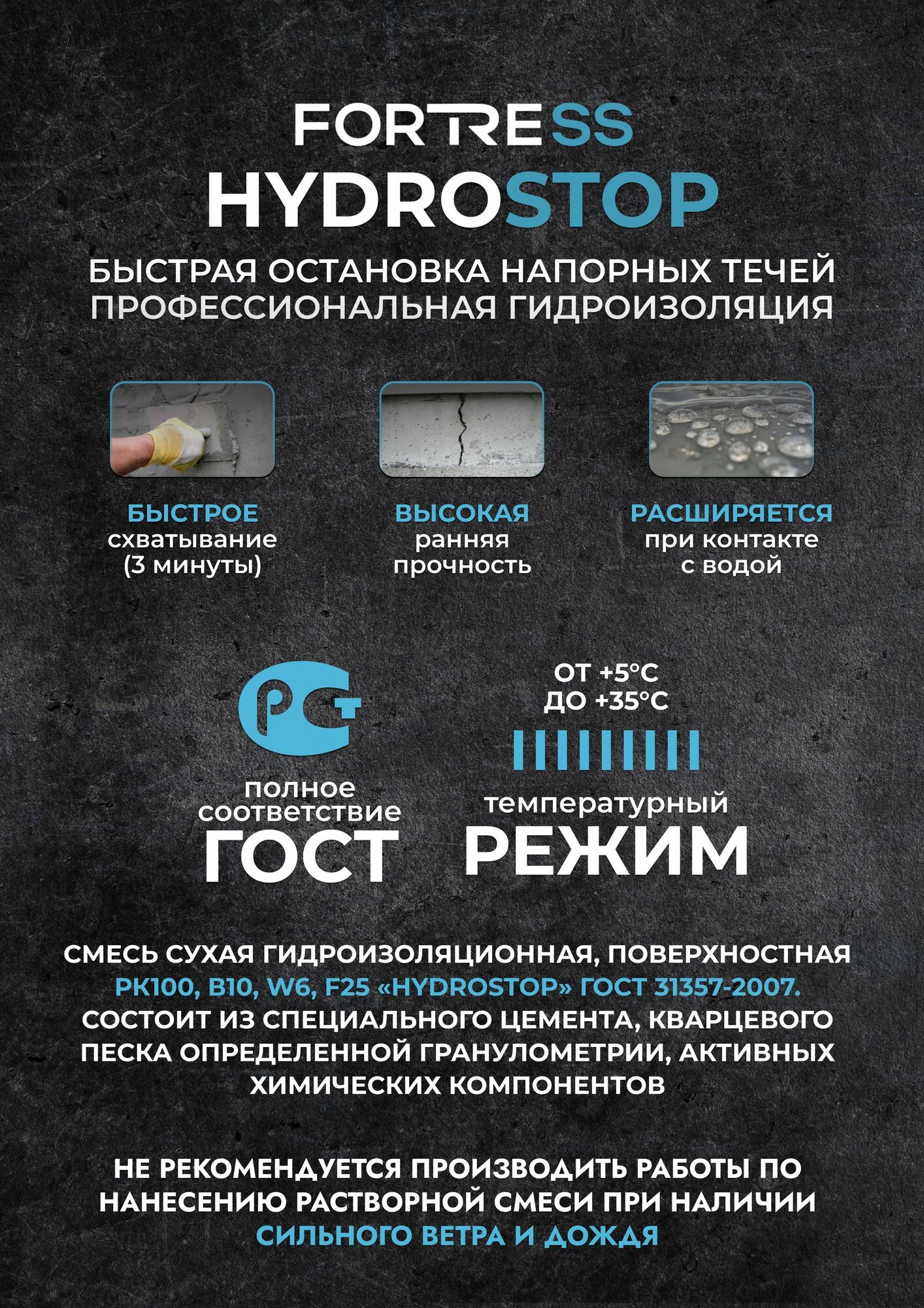 Гидропломба. Смесь для моментальной остановки напорной течи Гидростоп HYDROSTOP, ведро 5 кг интересное: