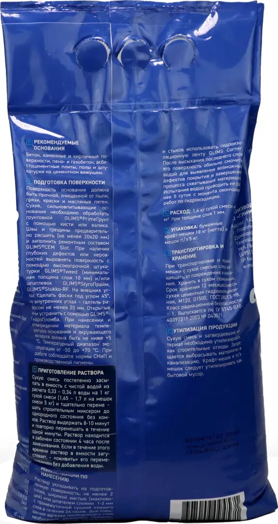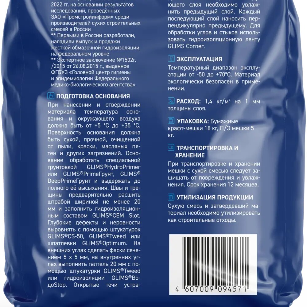 Сухая смесь для гидроизоляции Glims Водоstop 5 кг интересное: