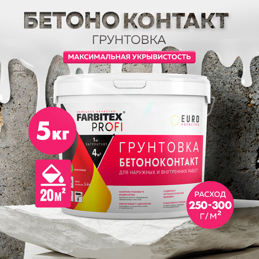 Грунтовка FARBITEX профи (акриловая; бетоноконтакт; 5 кг) 4300002318