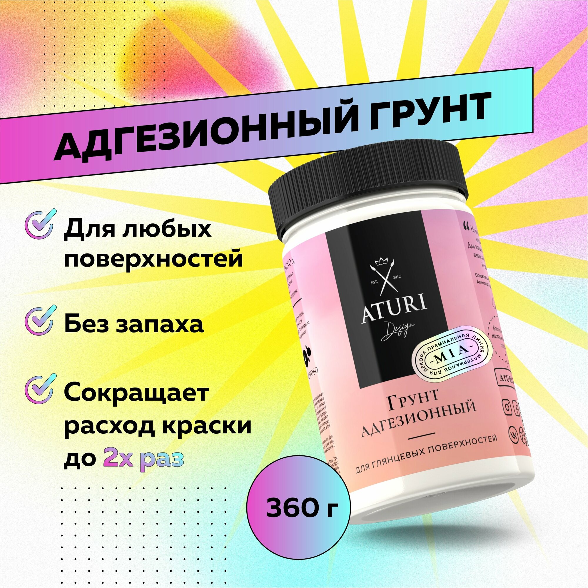 Грунтовка Aturi Design MIA, грунт адгезионный для мебели, дерева и пластика для стекла, для дверей, декора, без запаха
