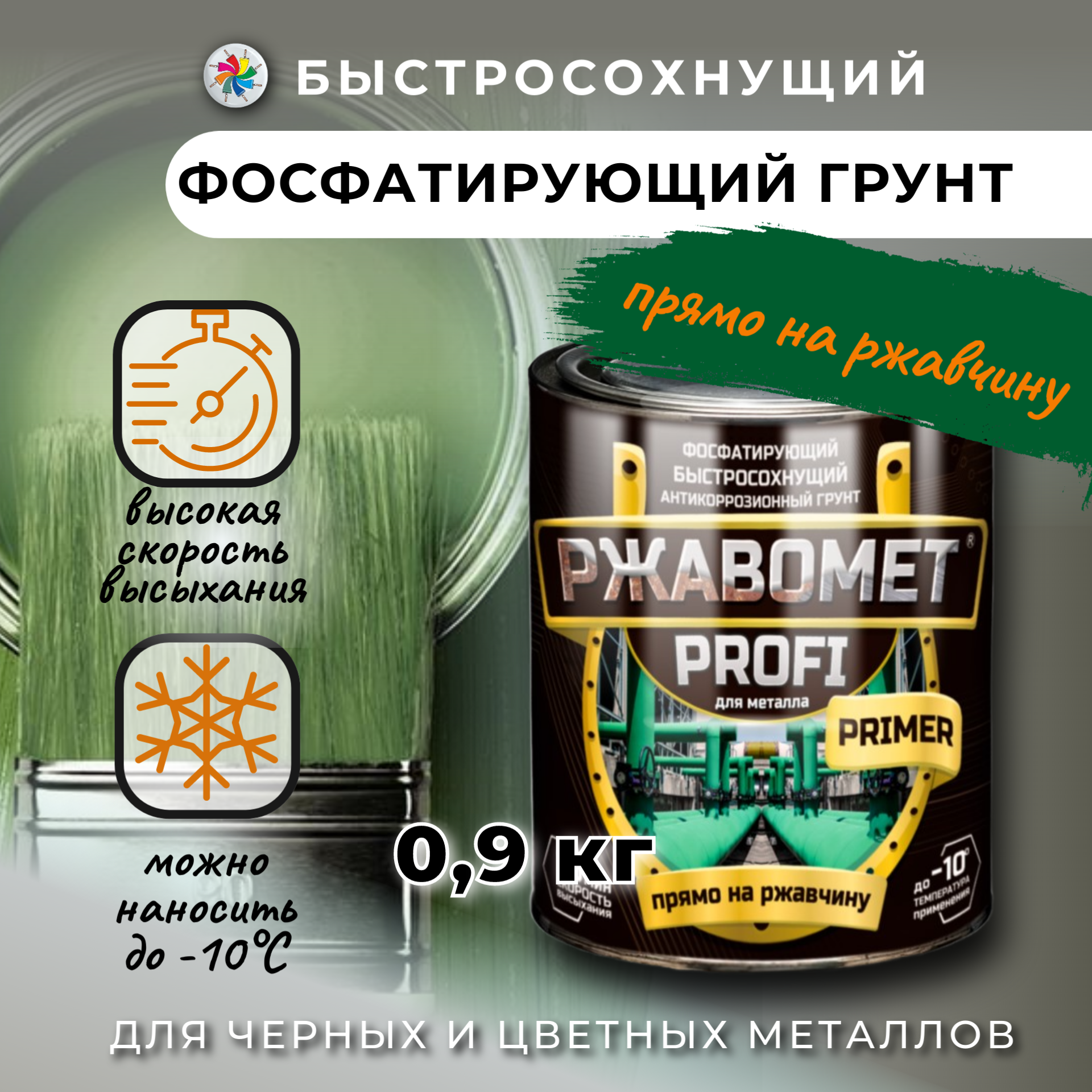 Купить Фосфатирующий грунт для черных и цветных металлов, Ржавомет PROFI PRIMER, 0,9 кг.