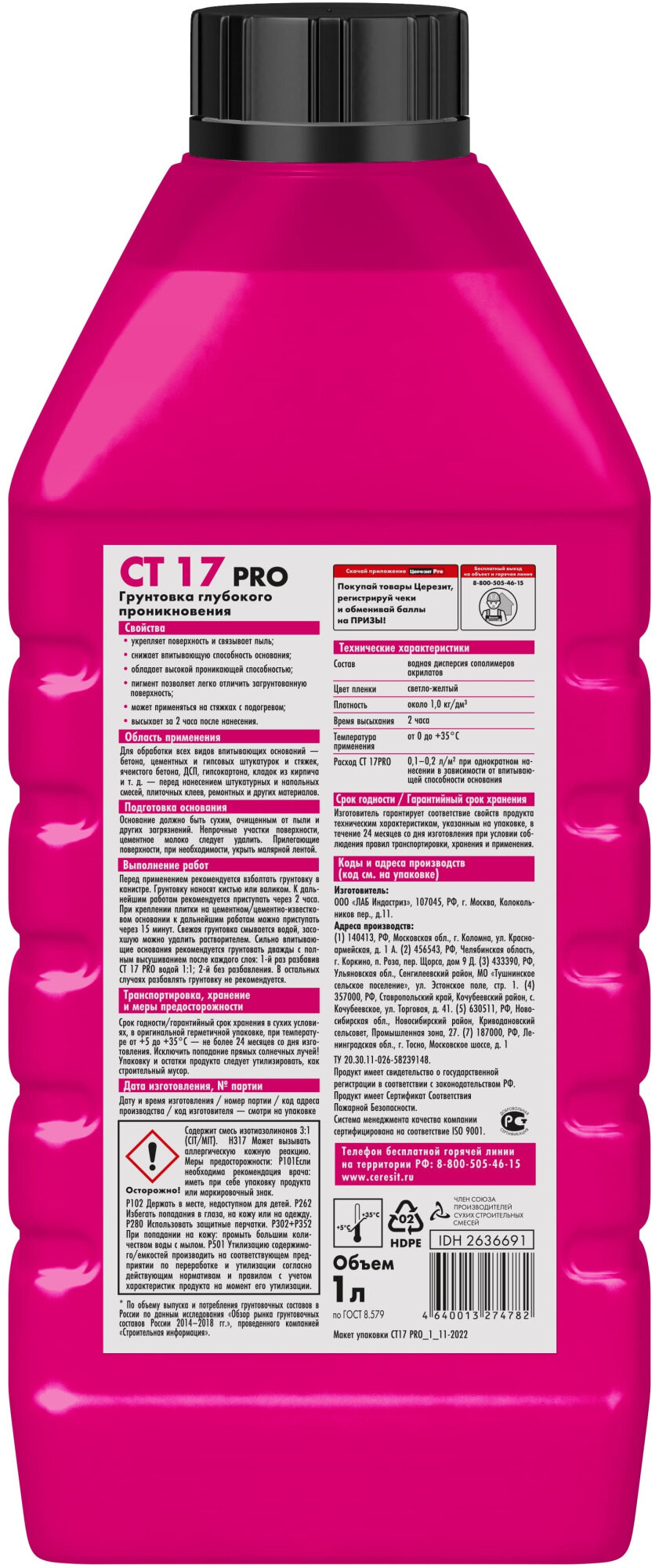 Грунтовка для стен глубокого проникновения Церезит (Ceresit) CT 17 PRO, 1 л интересное: