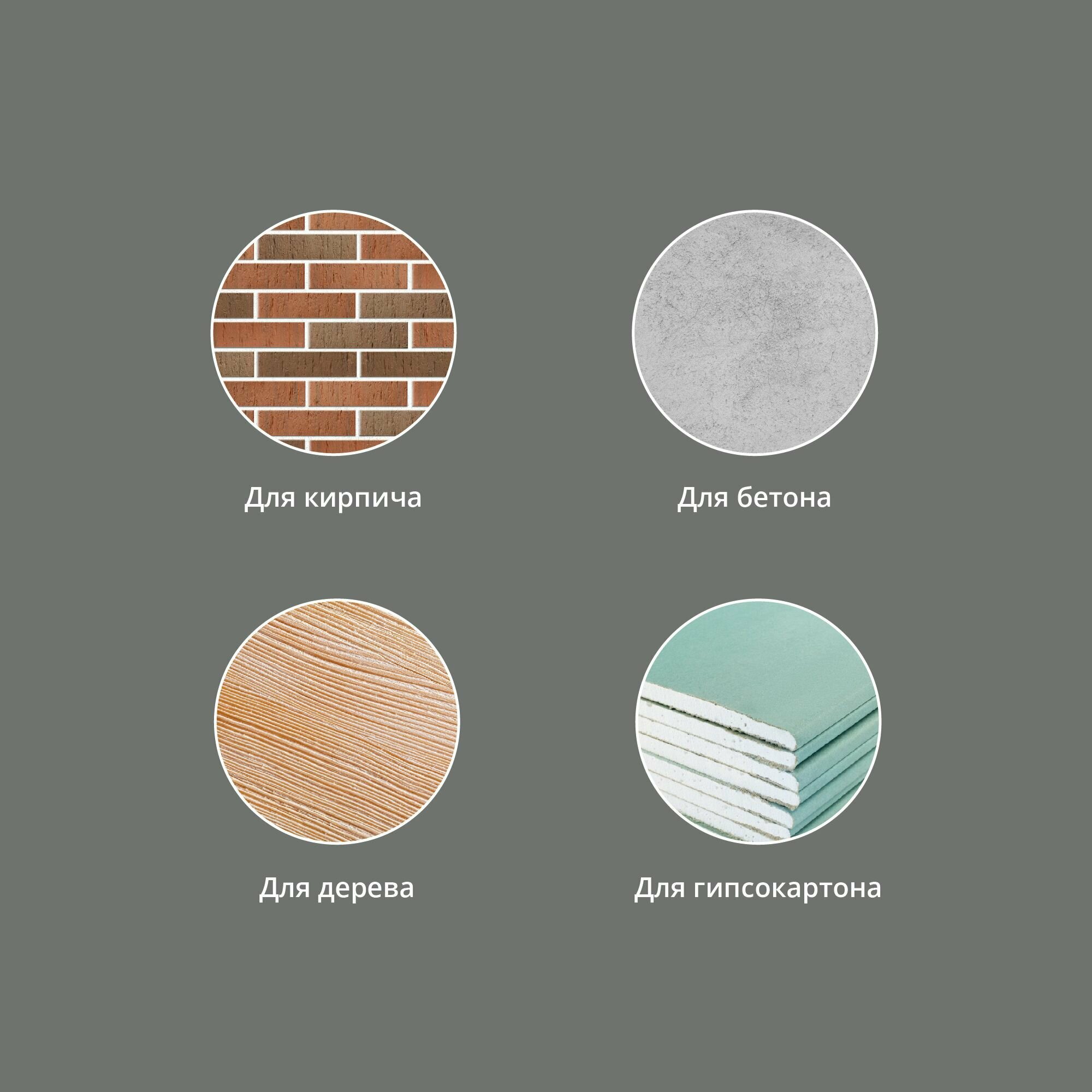 | Поверхность обработки | бетон / газобетон / гипсокартон / дерево / камень / керамическая плитка / кирпич / краска / металл / пенопласт / штукатурка |