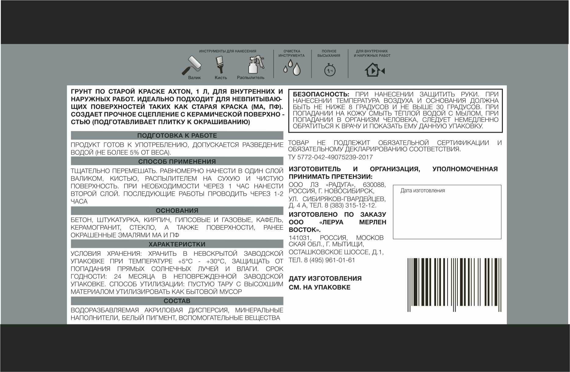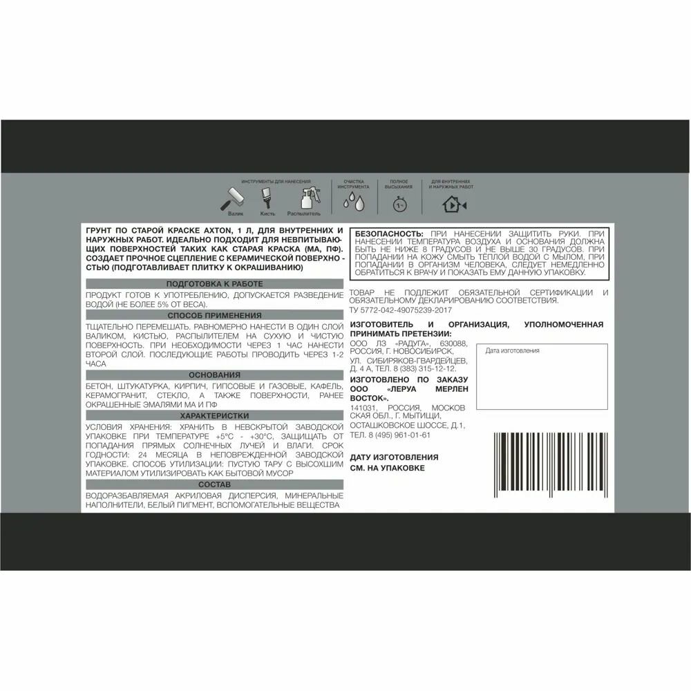| Дополнительная информация | Грунтовка по старой краске Axton 1 л |