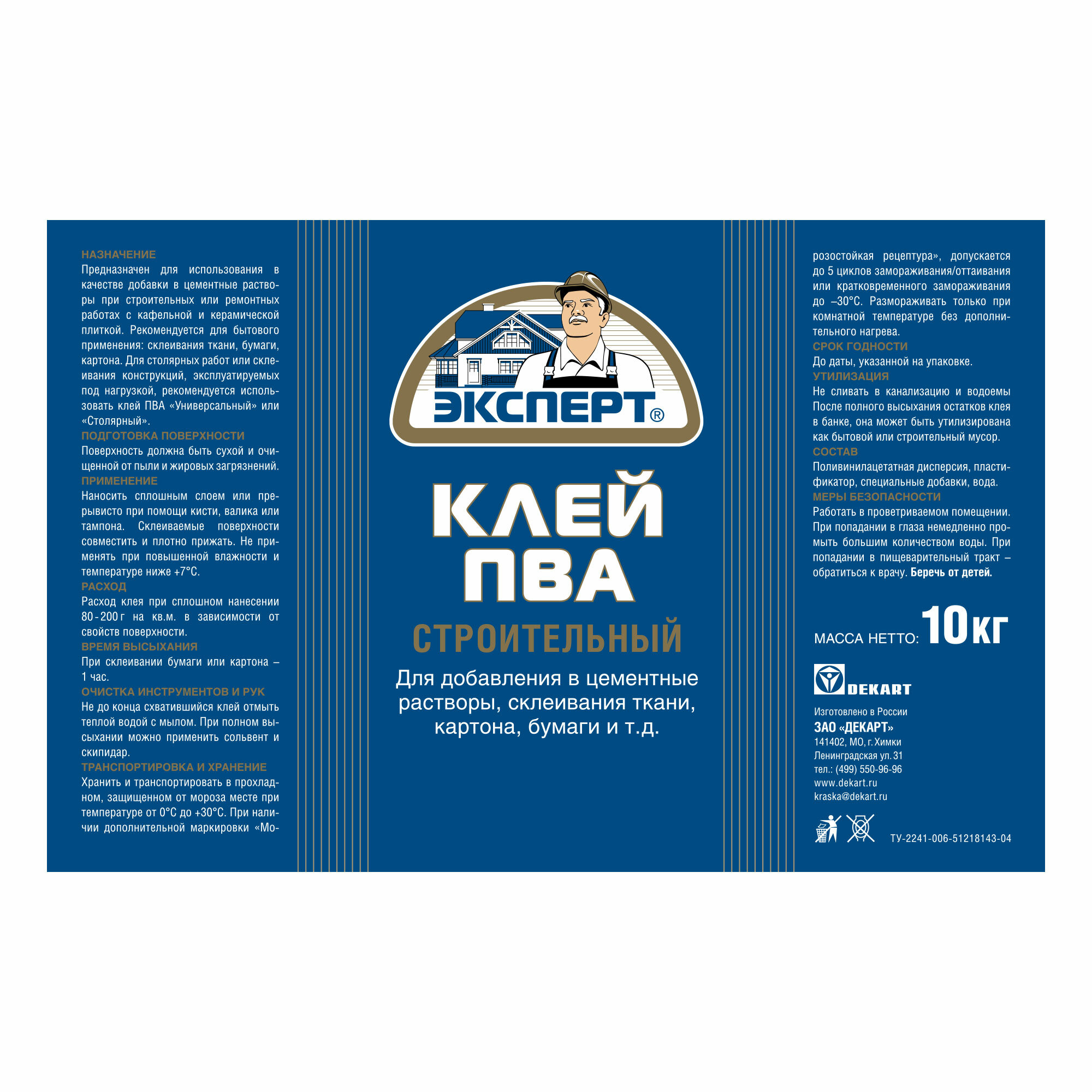Клей ПВА эксперт строительный 10 кг