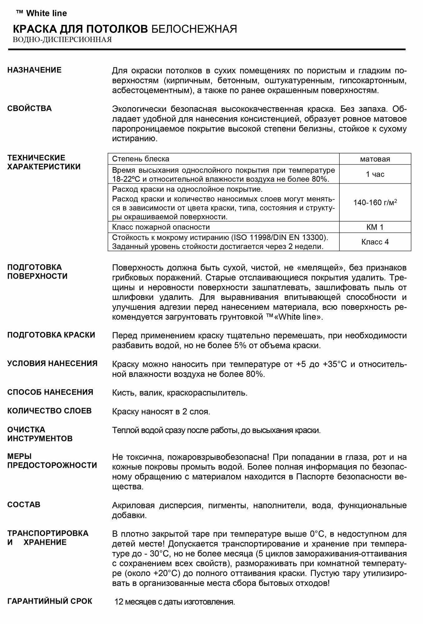 White Line Краска для потолков, без запаха, моющаяся / акриловая, для стен, матовая, белая, 3 кг интересное: