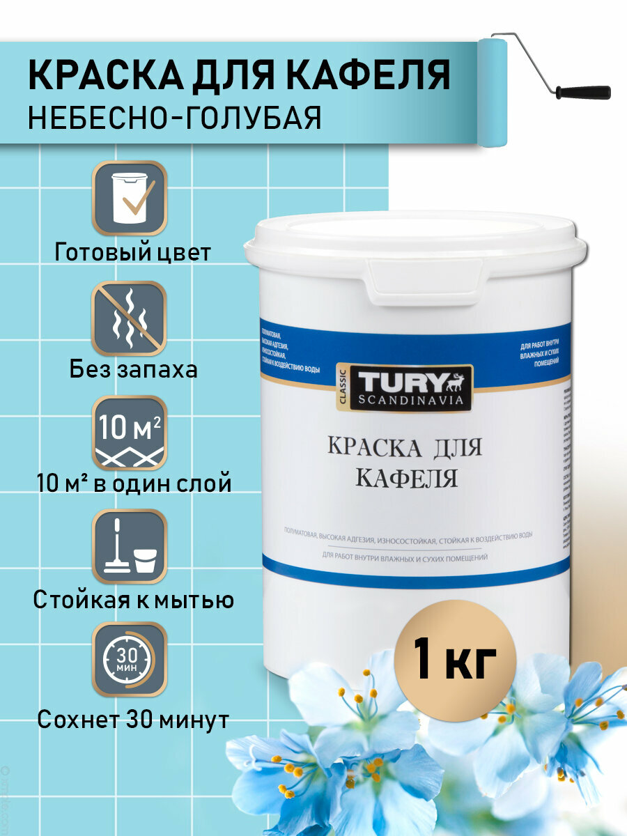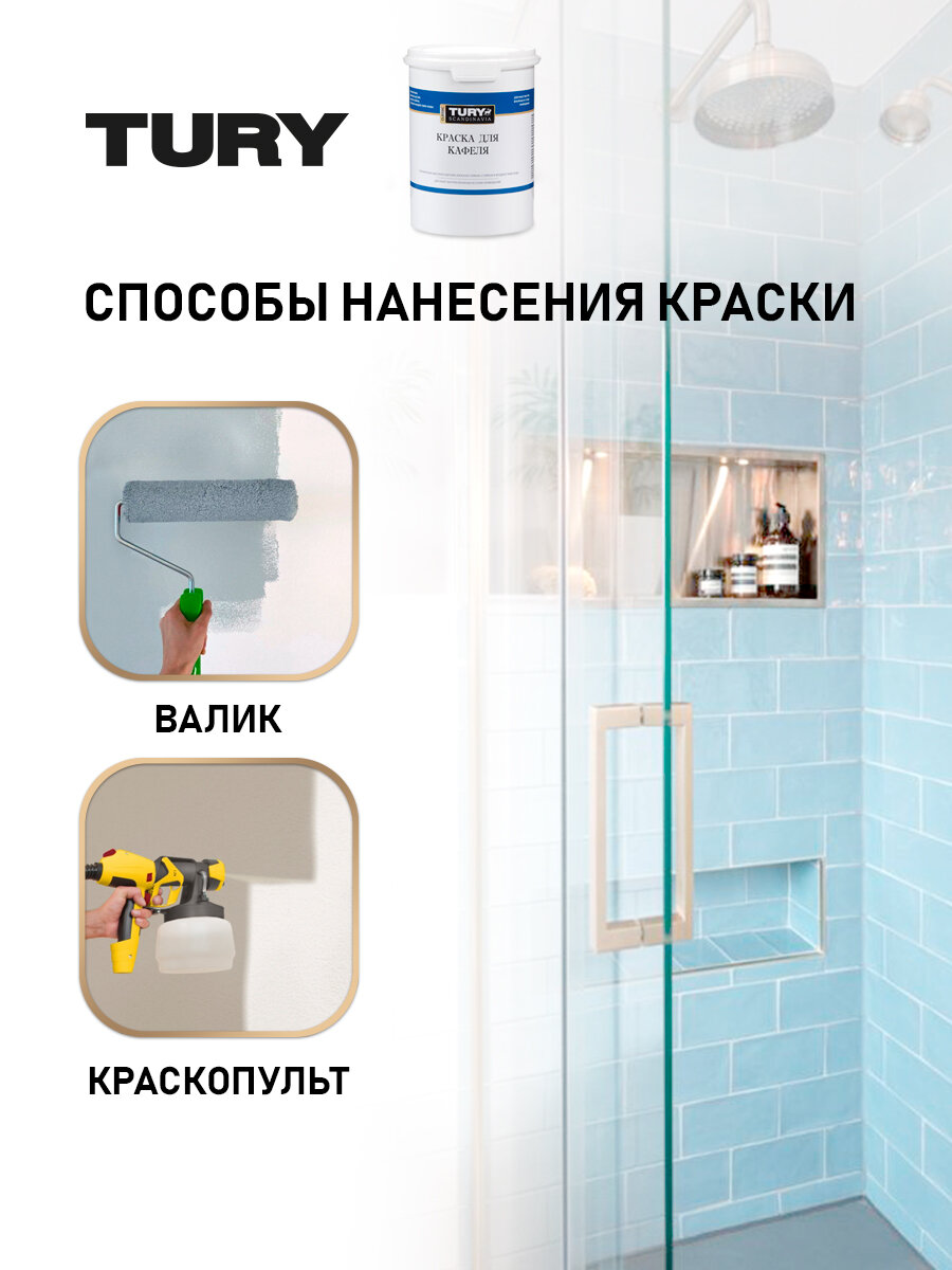 Краска для ванной комнаты TURY для кафельной и кермической плитки, без запаха, оттенок Небесно-голубой 1,1 кг интересное: