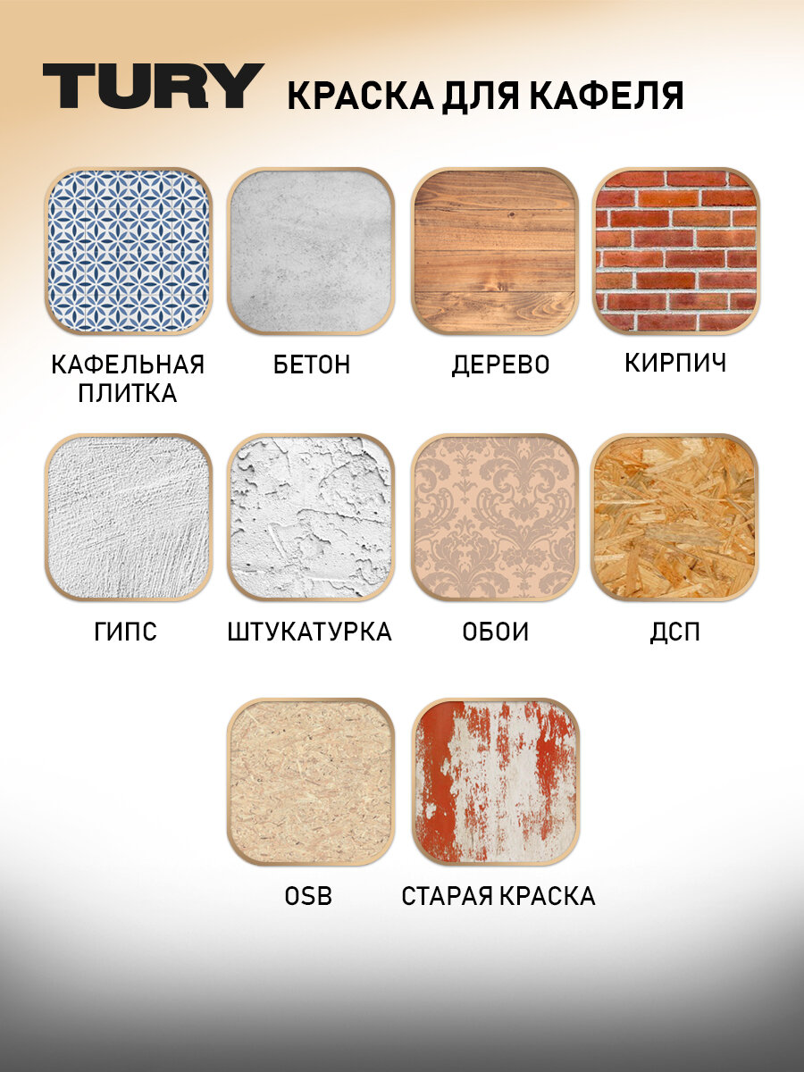 Краска для ванной комнаты TURY для кафельной и кермической плитки, без запаха, оттенок Крем-брюле 1,1 кг