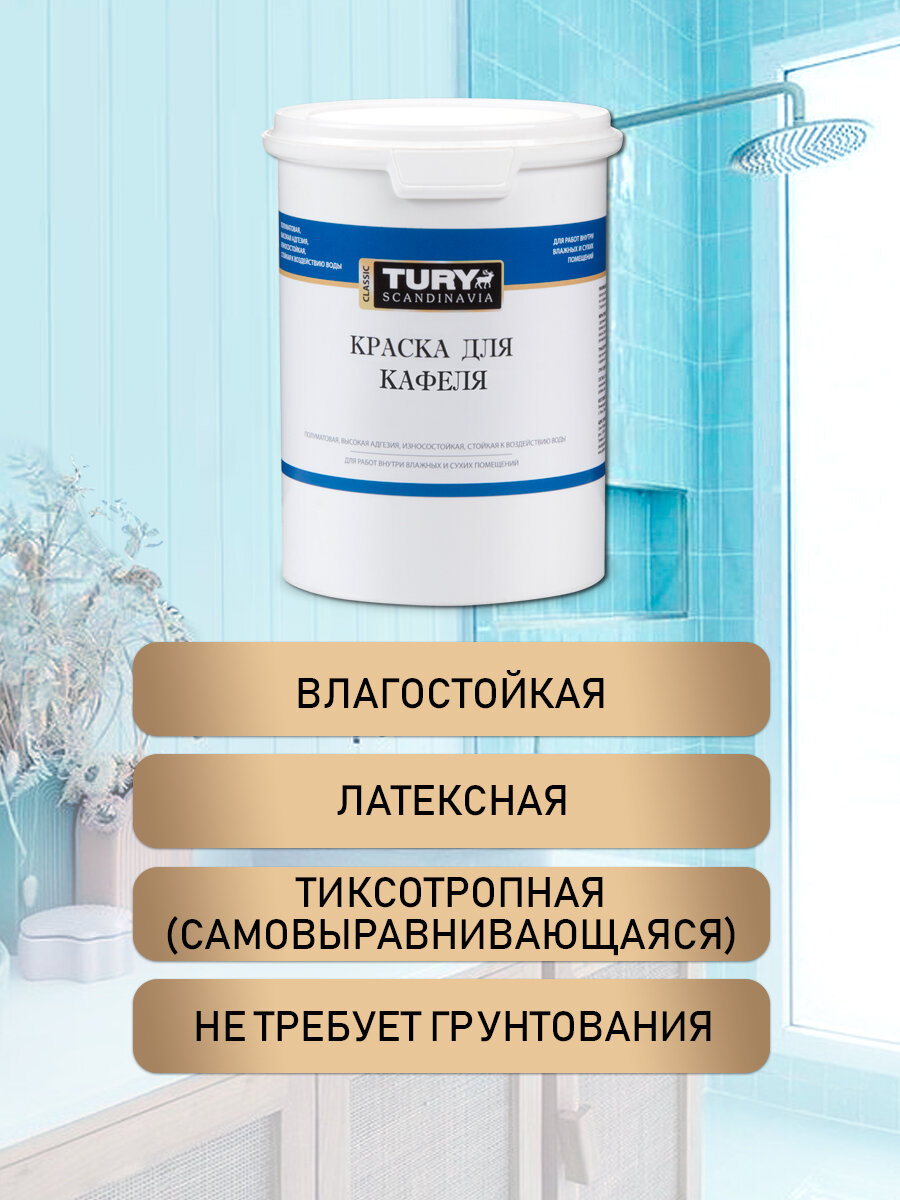 Краска для ванной комнаты TURY для кафельной и кермической плитки, без запаха, оттенок белая 1,1 кг