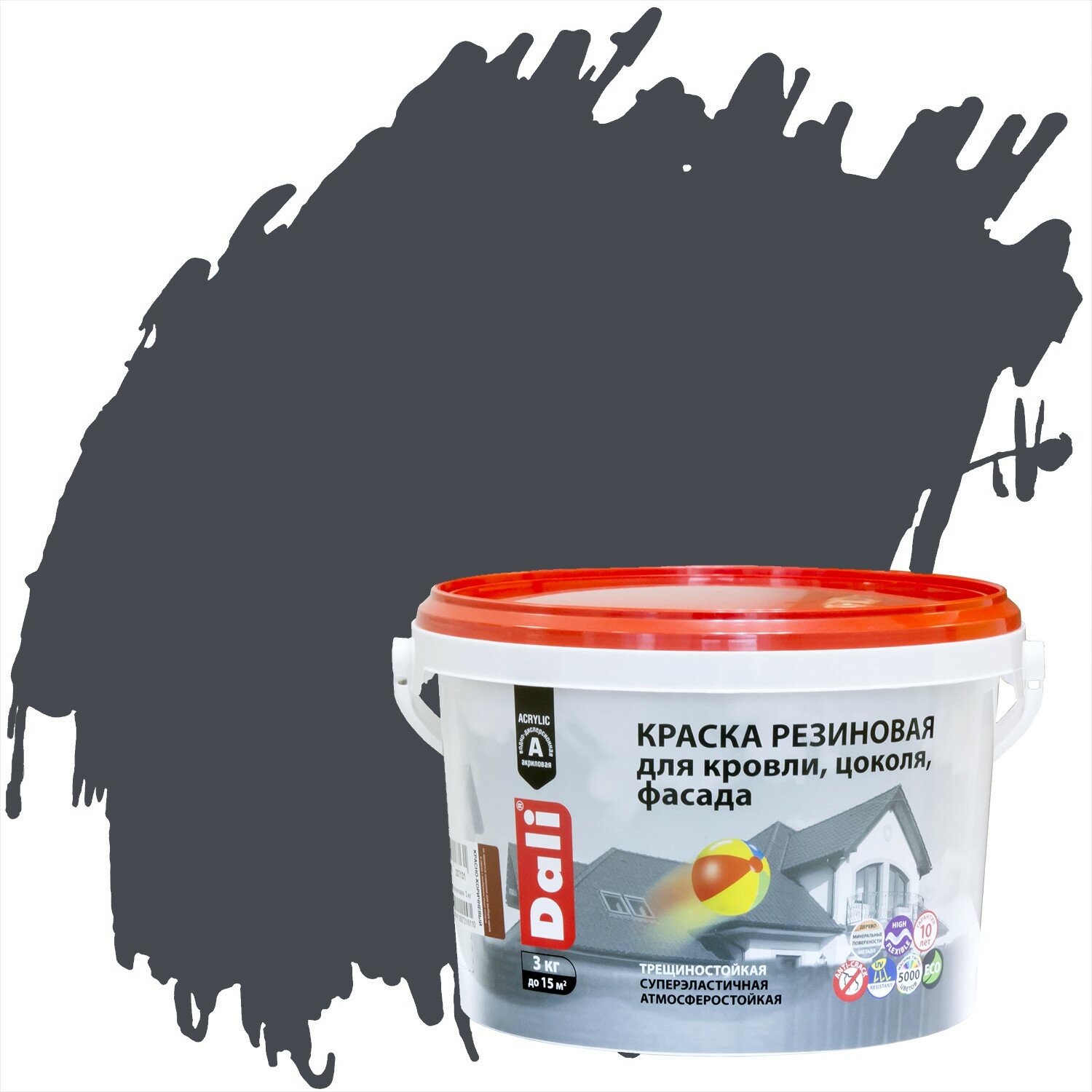 Купить Краска резиновая Dali глубокоматовая (3кг) серый графит RAL 7024