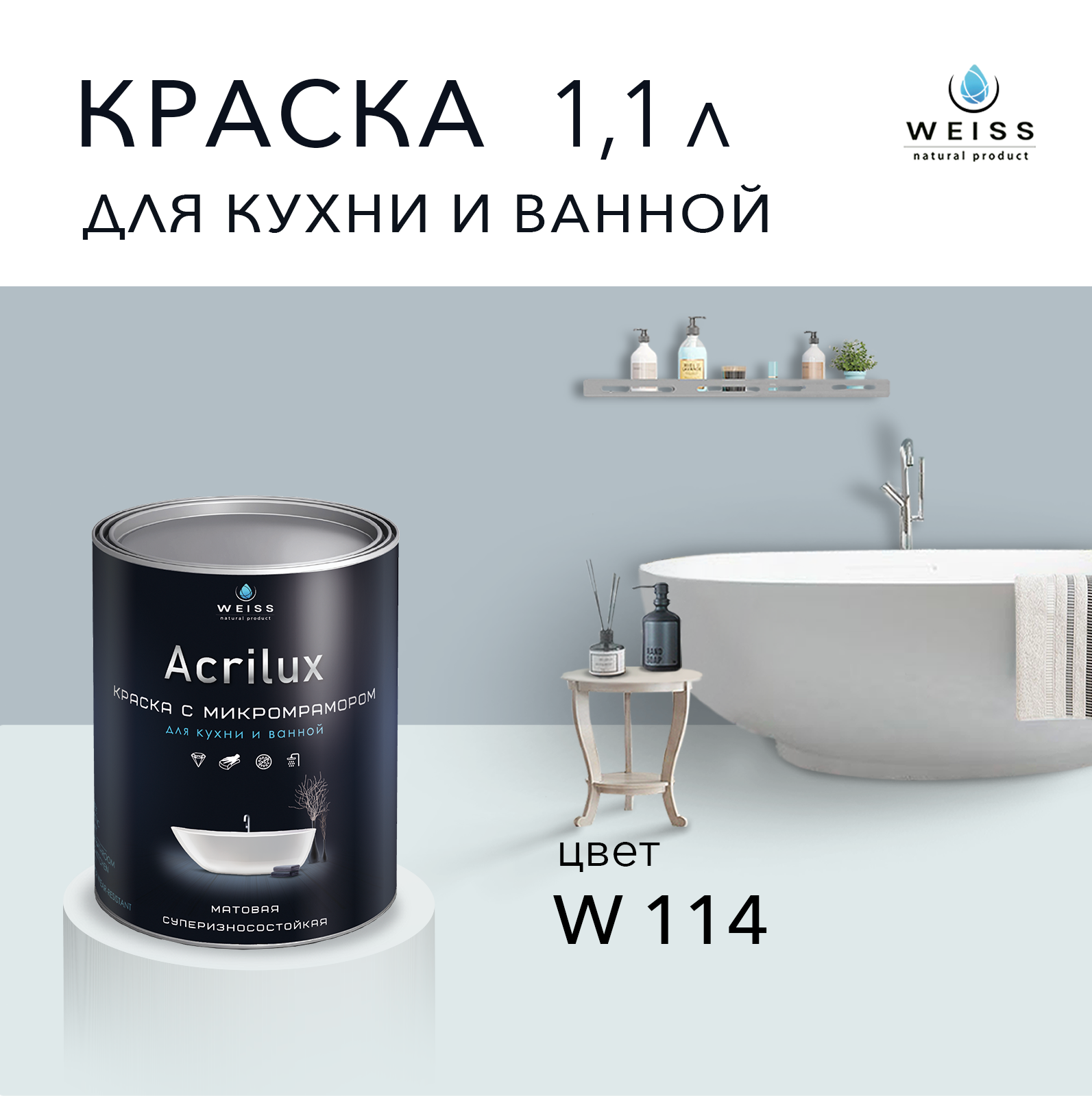 Купить Краска латексная WEISS Acrilux для кухни и ванной комнаты влагостойкая моющаяся матовая 1.1 л, W114