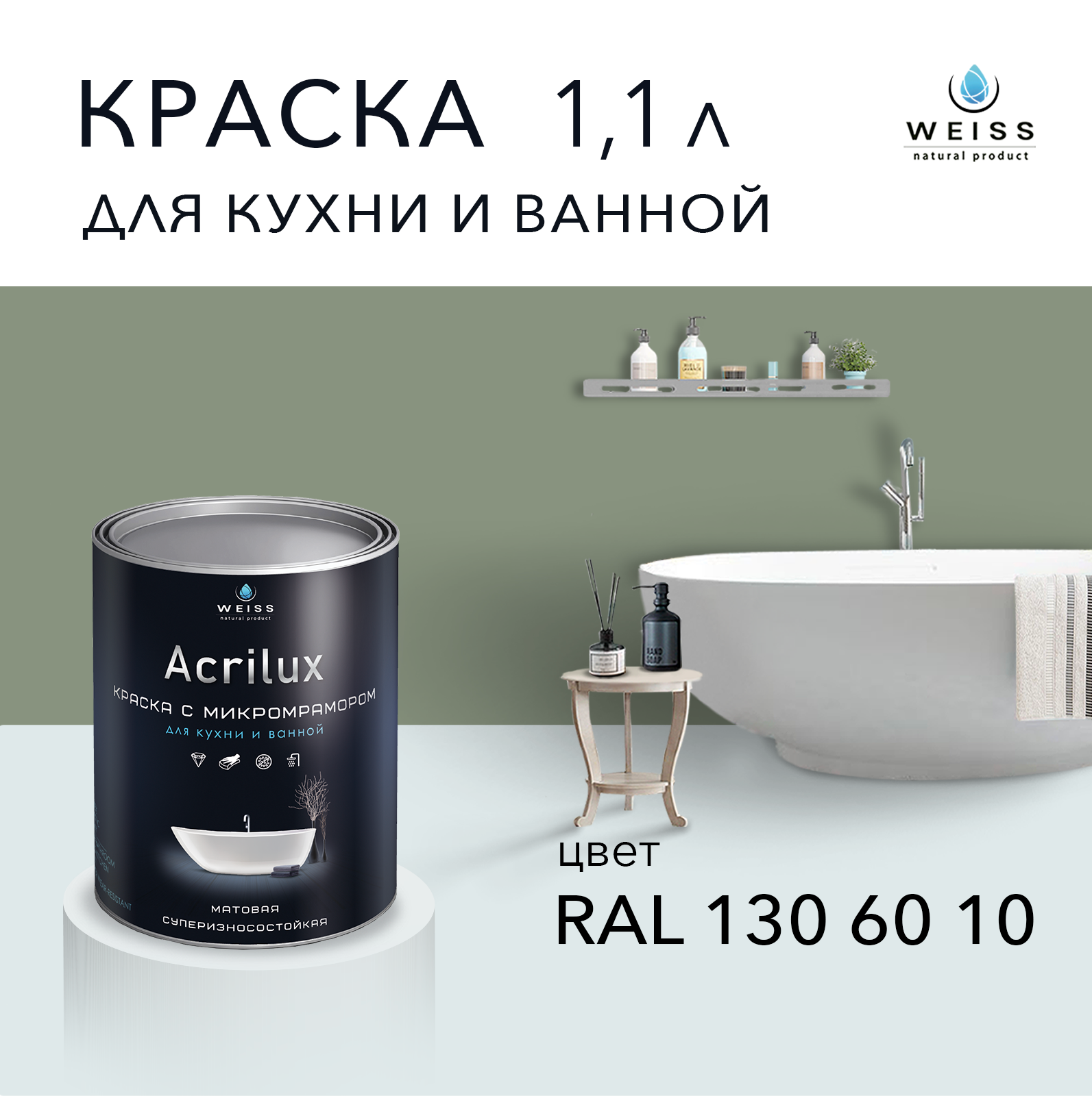 Купить Краска латексная WEISS Acrilux для кухни и ванной комнаты влагостойкая моющаяся матовая 1.1 л, RAL 130 60 10