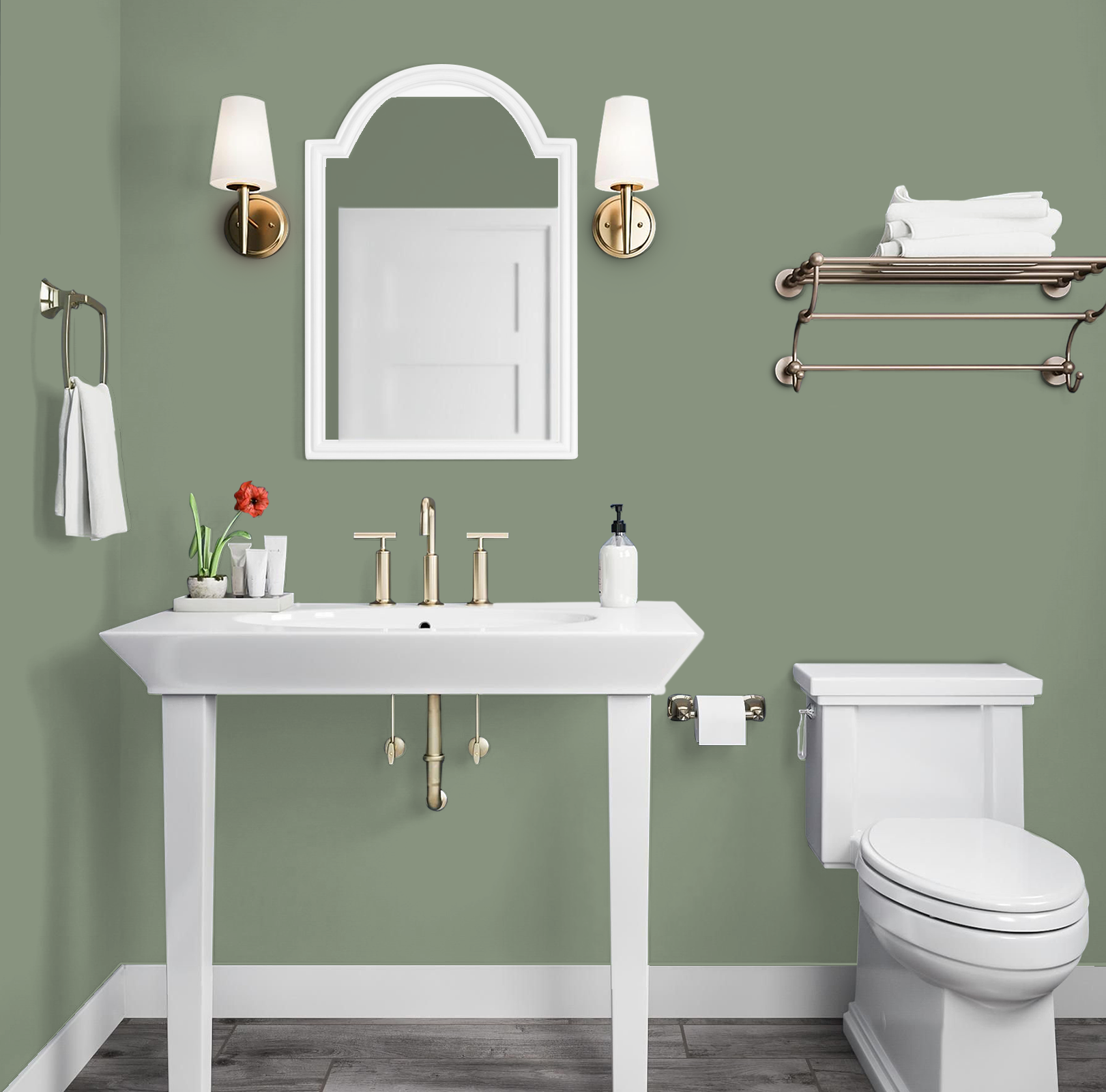 Краска акриловая, моющаяся для стен и влажных помещений, кухни и ванной комнаты 1.1л Ral 6004 Изумрудный