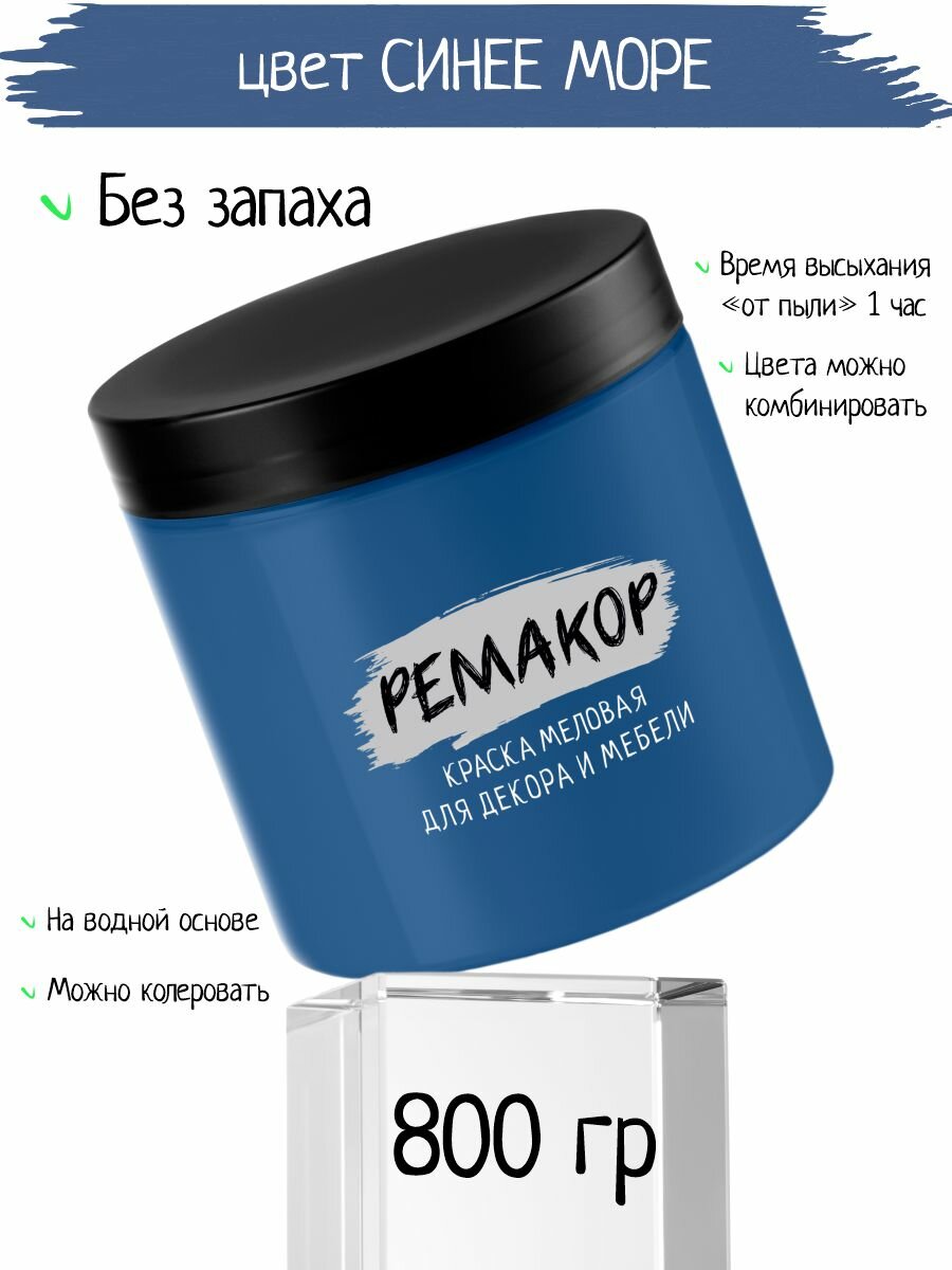Купить Краска для мебели ремакор меловая, для декора, без запаха, матовая, быстросохнущая, 800 гр, цвет Синее море