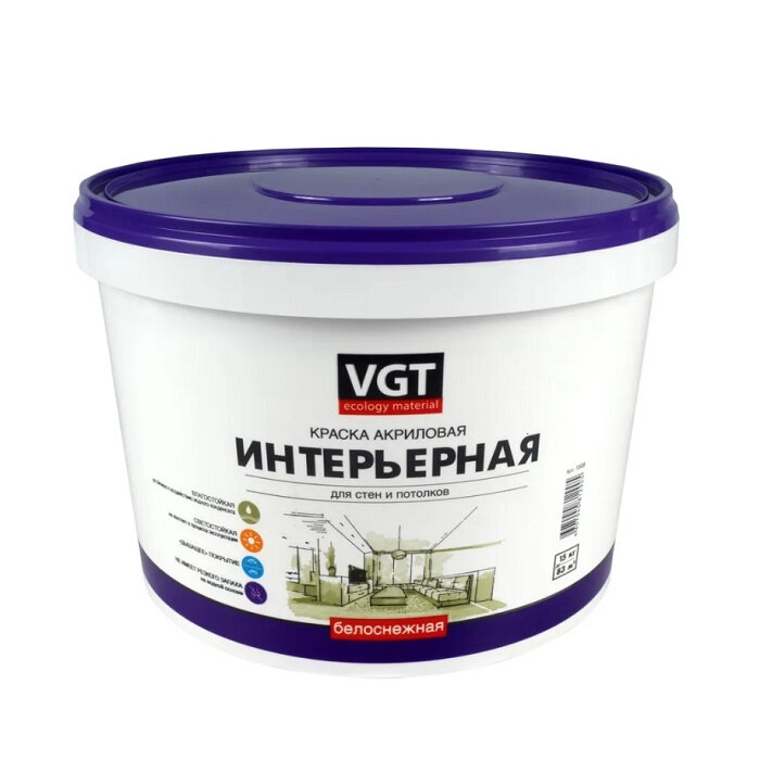 Краска для стен и потолков VGT, краска акриловая для внутренних работ супербелая, 1.5 кг