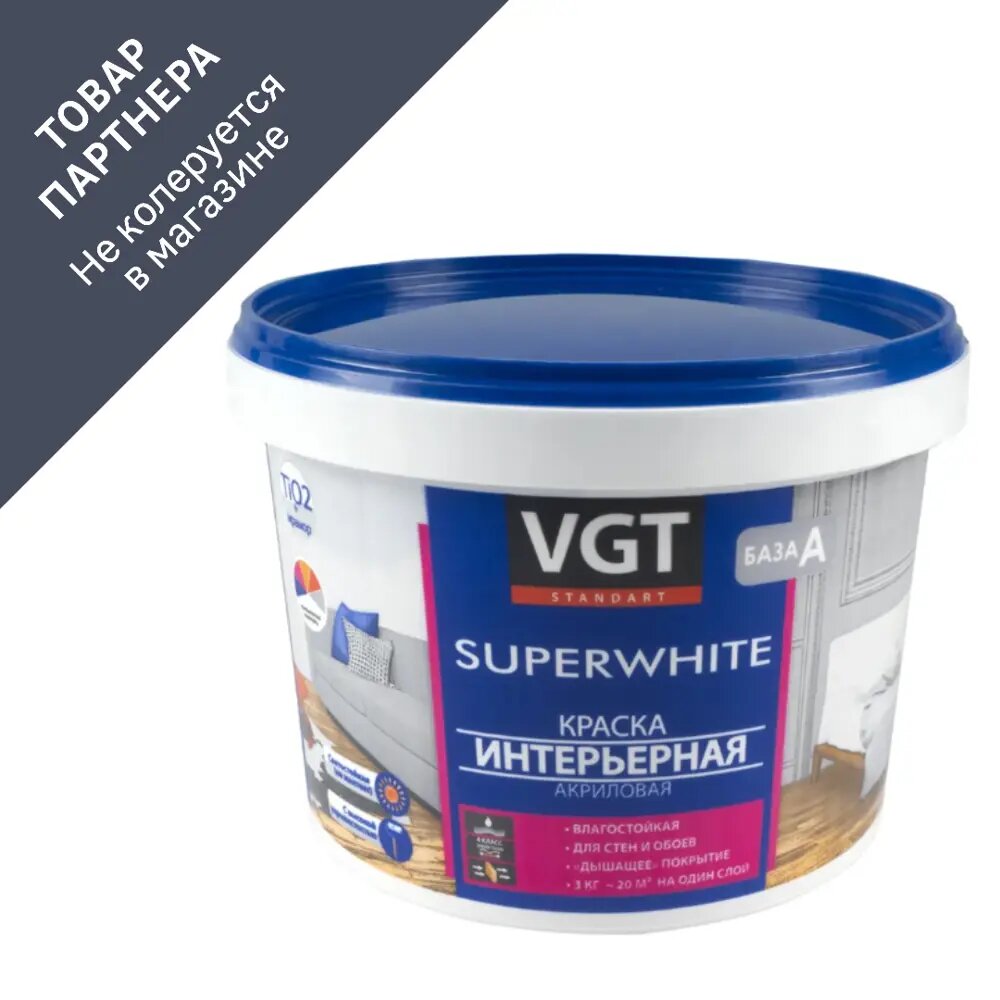 Краска акриловая интерьерная ВД-АК-2180 VGT Superwhite база A, белая, матовая (3кг)