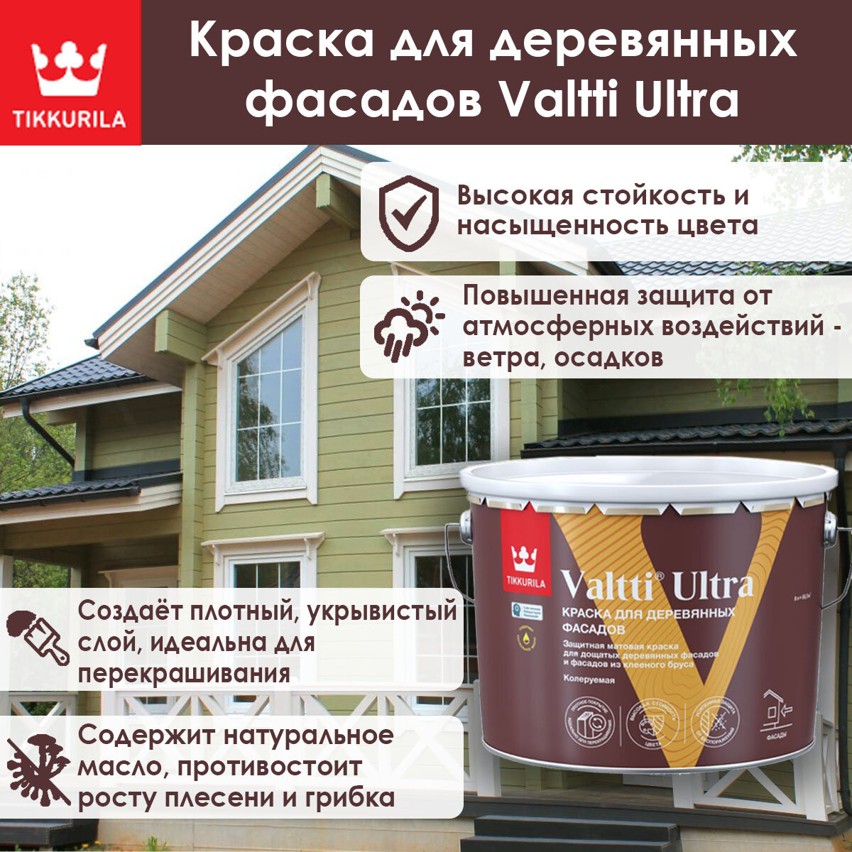 Краска Tikkurila Valtti Ultra для деревянных фасадов база А 9 л интересное: