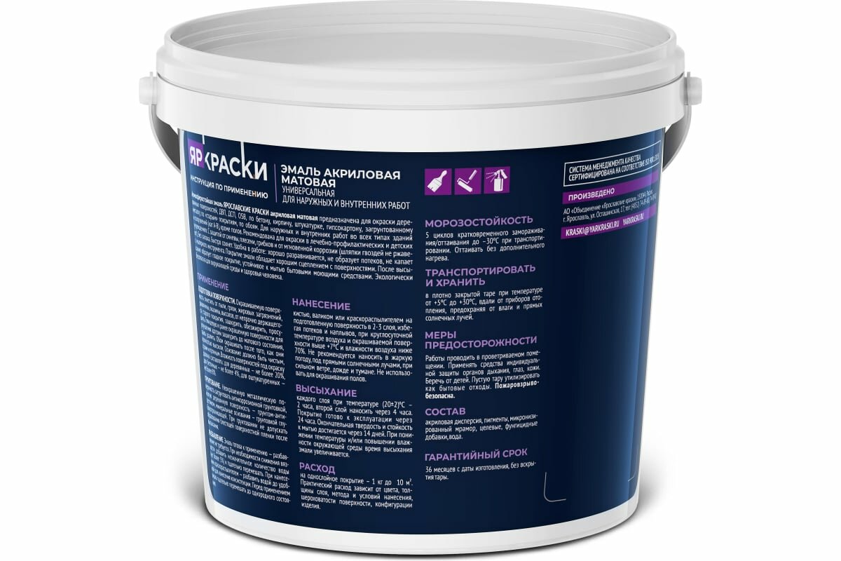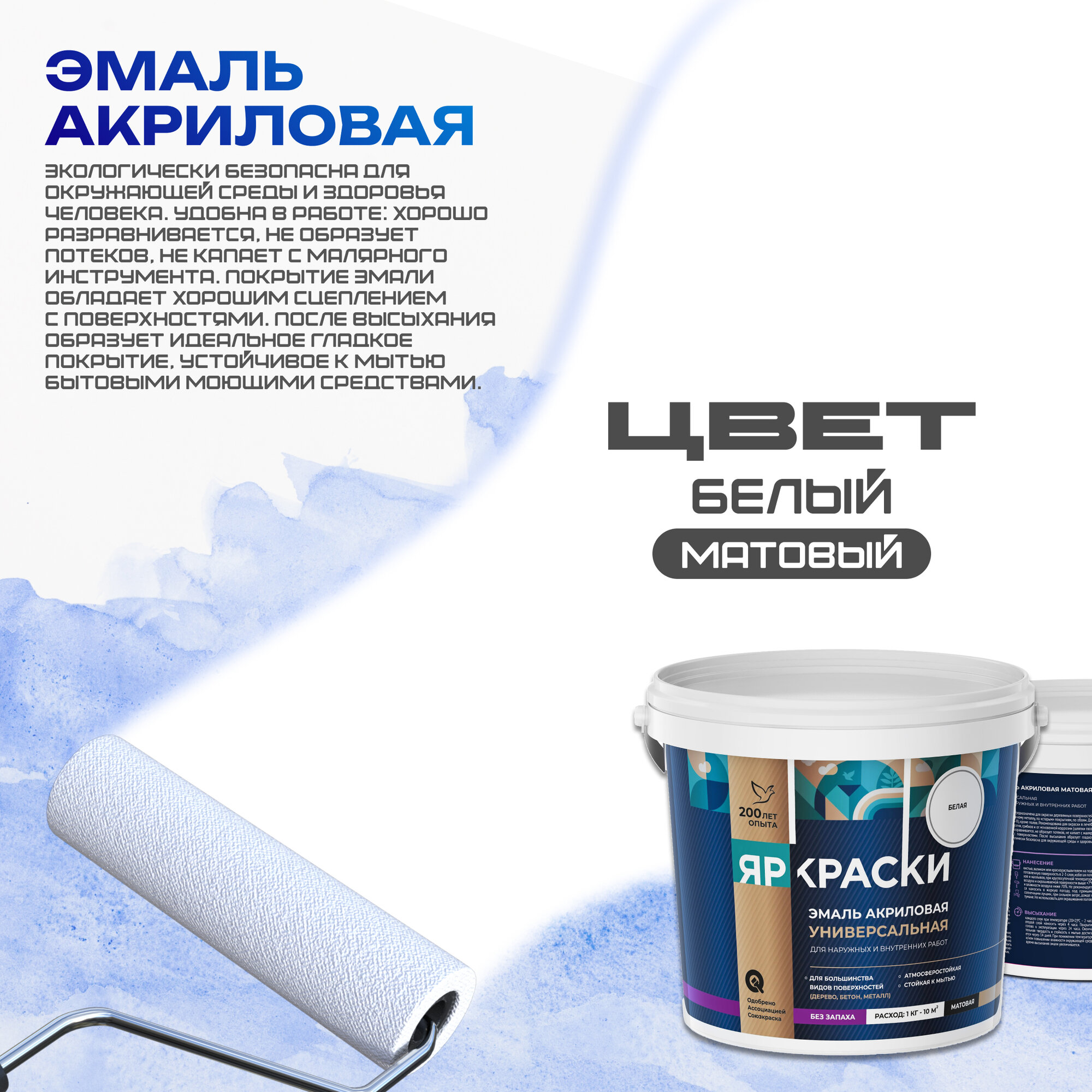 Ярославские краски эмаль акриловая универсальная матовая, белая (2,5кг)